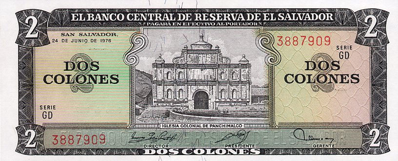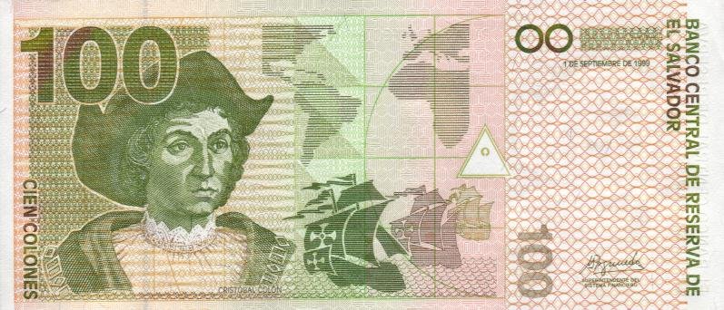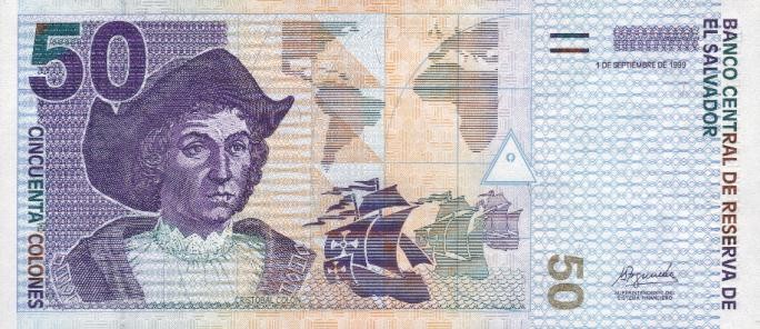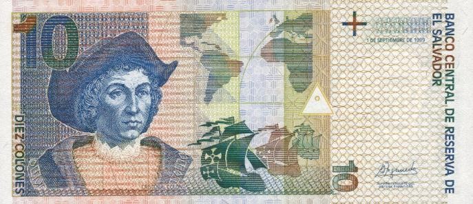 1892년 10월 1일, 카를로스 에제타 대통령 정부는 크리스토퍼 콜럼버스의 아메리카 대륙 발견을 기념하기 위해 살바도르 페소를 '콜론'으로 명명했다.[9] 1919년에 콜론은 페소를 1:1로 대체되었으며, 처음에는 2콜론 = 1미국 달러의 비율로 고정되었다. 엘살바도르는 1931년에 금본위제를 포기했고 그 가치는 변동되었다.