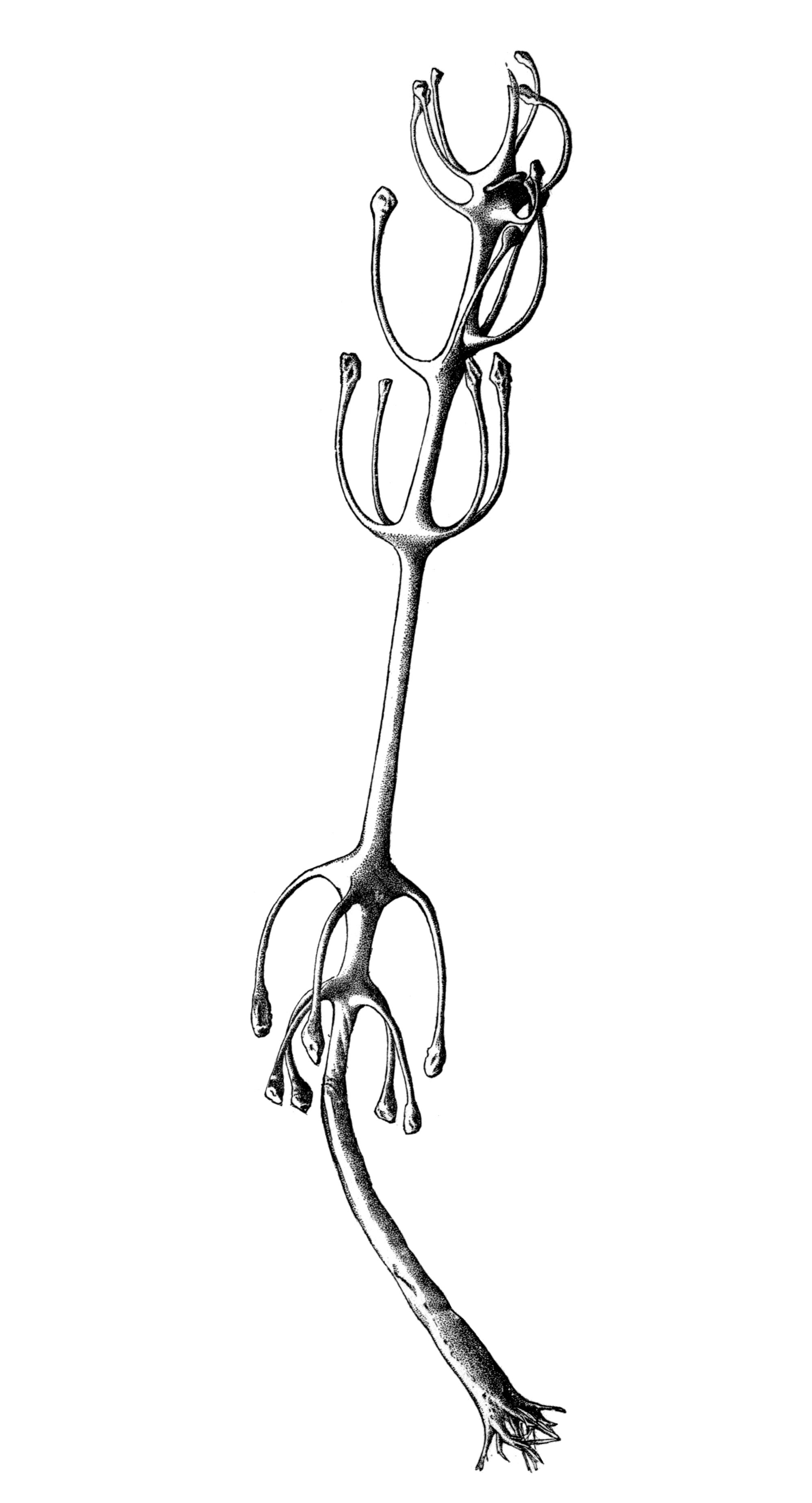 1888년 알렉산더 아가시는 항해기 『''Three Cruises of the Blake''』에서 당시 ''Cladorhiza concrescens''로 알려진 해면동물에 대해 기록했다. 아가시는 이 해면동물을 다음과 같이 묘사했다.[3]:긴 줄기가 진흙 속에 깊이 박힌, 가지가 뻗어나가는 뿌리로 끝나는 긴 줄기를 가지고 있다. 줄기에는 4~6개의 곤봉 모양 부속물이 있는 마디가 있다. 이들은 분명히 바닥의 광대한 지역을 덤불처럼 덮고 있다.