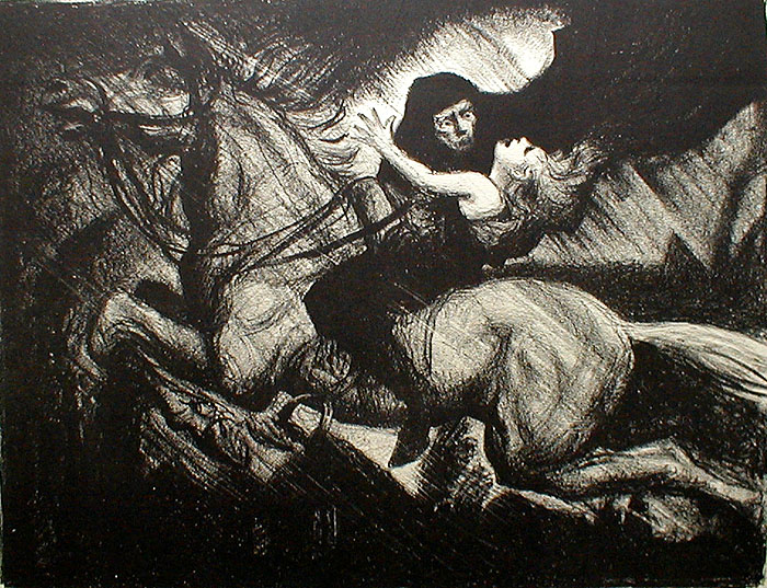 혹은, 땅에 뻗어, 심장에 맞은 암소가 누울 때.[9]