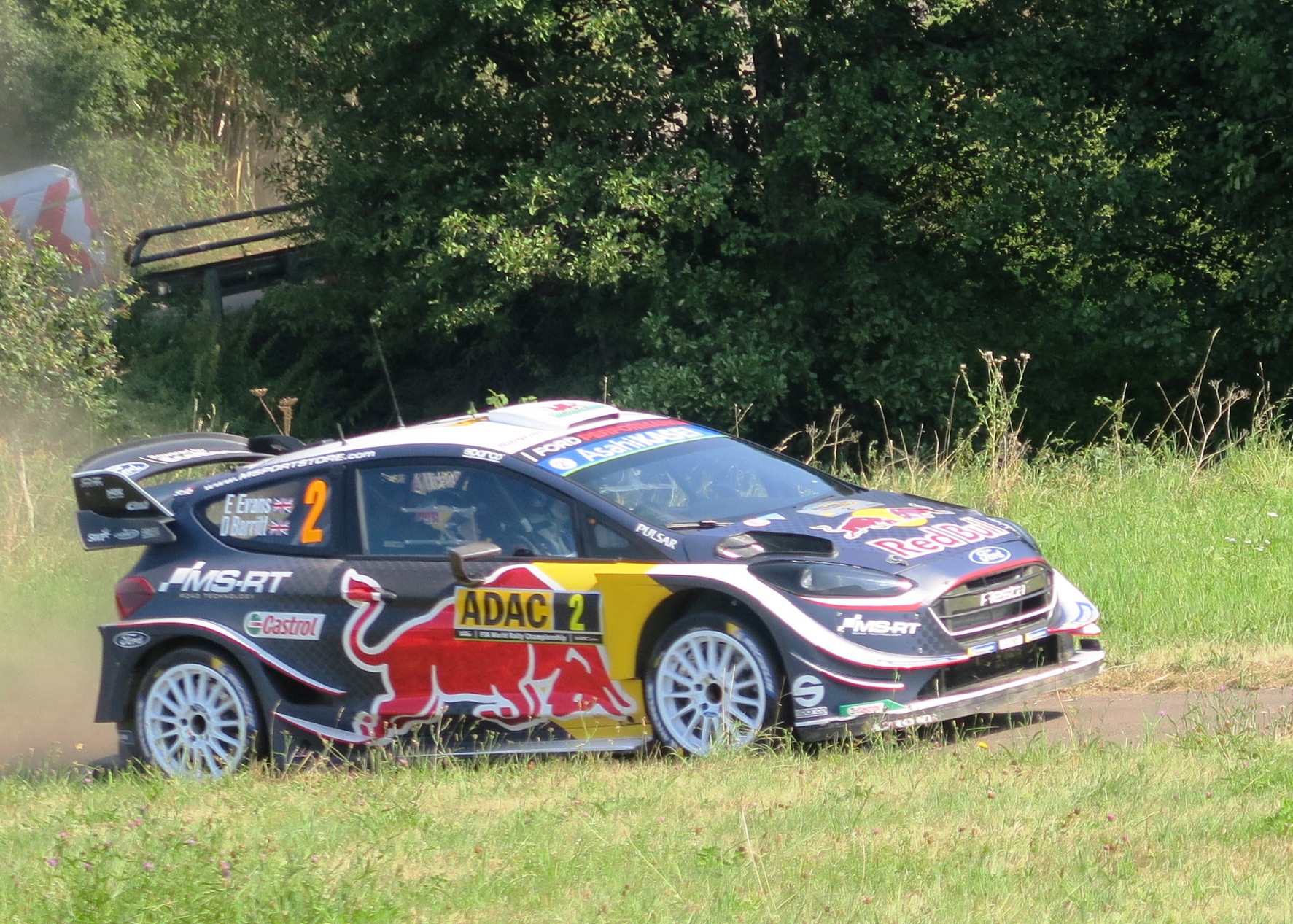 2018년 독일 랠리에서 포드 피에스타 WRC를 탄 엘핀 에반스와 대니얼 배릿