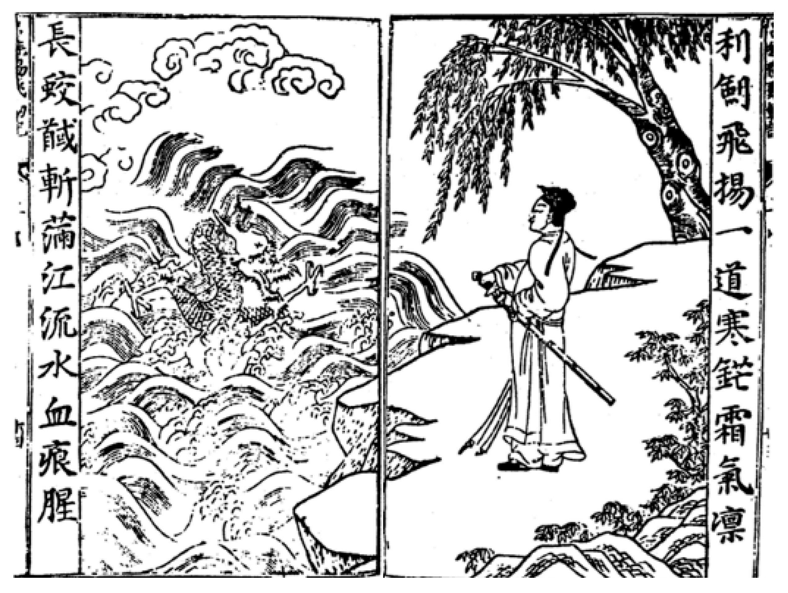 여동빈은 그의 마법 검으로 여러 마리의 중국 용을 죽였다.[3]