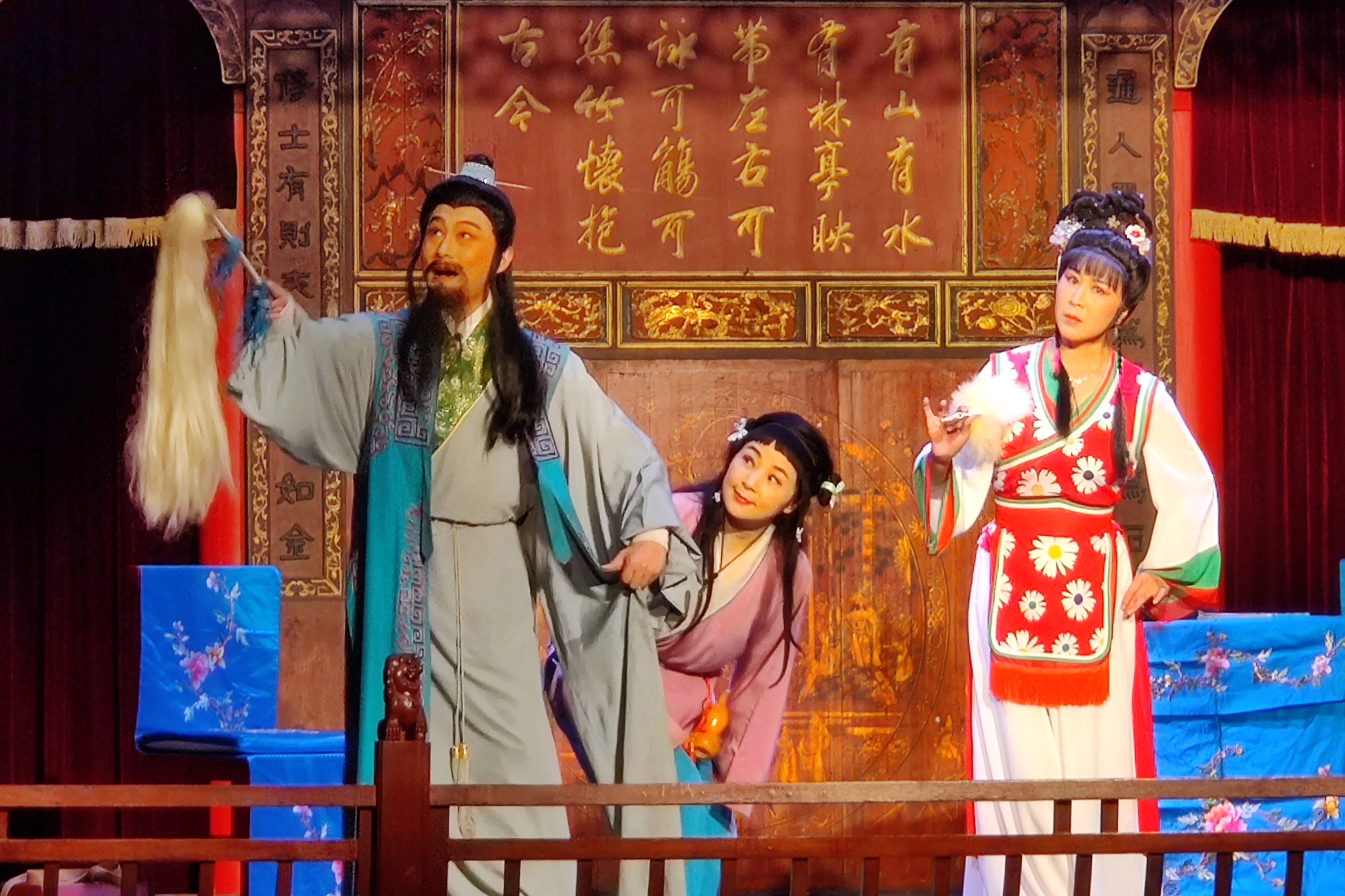 경극 버전에서는 백모란이 유혹적인 기생에서 약방 주인의 딸로 변경된다. 어느 날 려동빈이 그들의 가게에 와서 불가능한 약을 요구하며 소란을 피운다. 백모란은 아버지의 어려움을 알고 려동빈을 만나 그의 모든 질문에 답한다. 다투는 과정에서 그들은 마침내 연인이 된다.[9]
