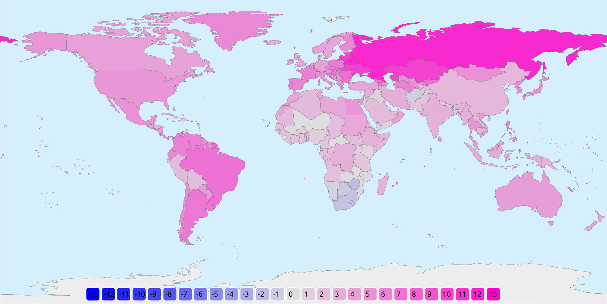 여성의 평균 수명은 대부분의 국가에서 남성보다 길다.[182]
