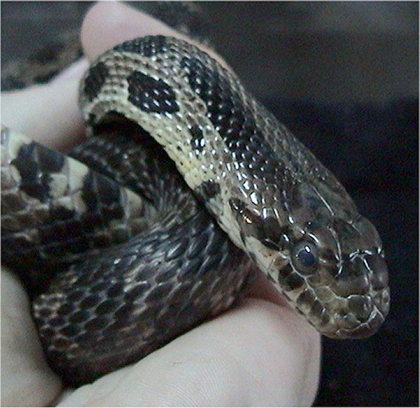 종명인 ''vulpinus''는 모식표본을 수집한 찰스 폭스 목사(1815-1854)를 기리기 위한 것으로, 학문적인 말장난이다.[6] 주니어 동의어인 ''gloydi''의 종명은 미국의 파충류학자 하워드 K. 글로이드를 기리기 위한 것이다.[7][8] ''P. vulpinus''의 다른 일반적인 이름으로는 동부여우뱀, 여우뱀, 여우 뱀이 있다.[9]3. 형태