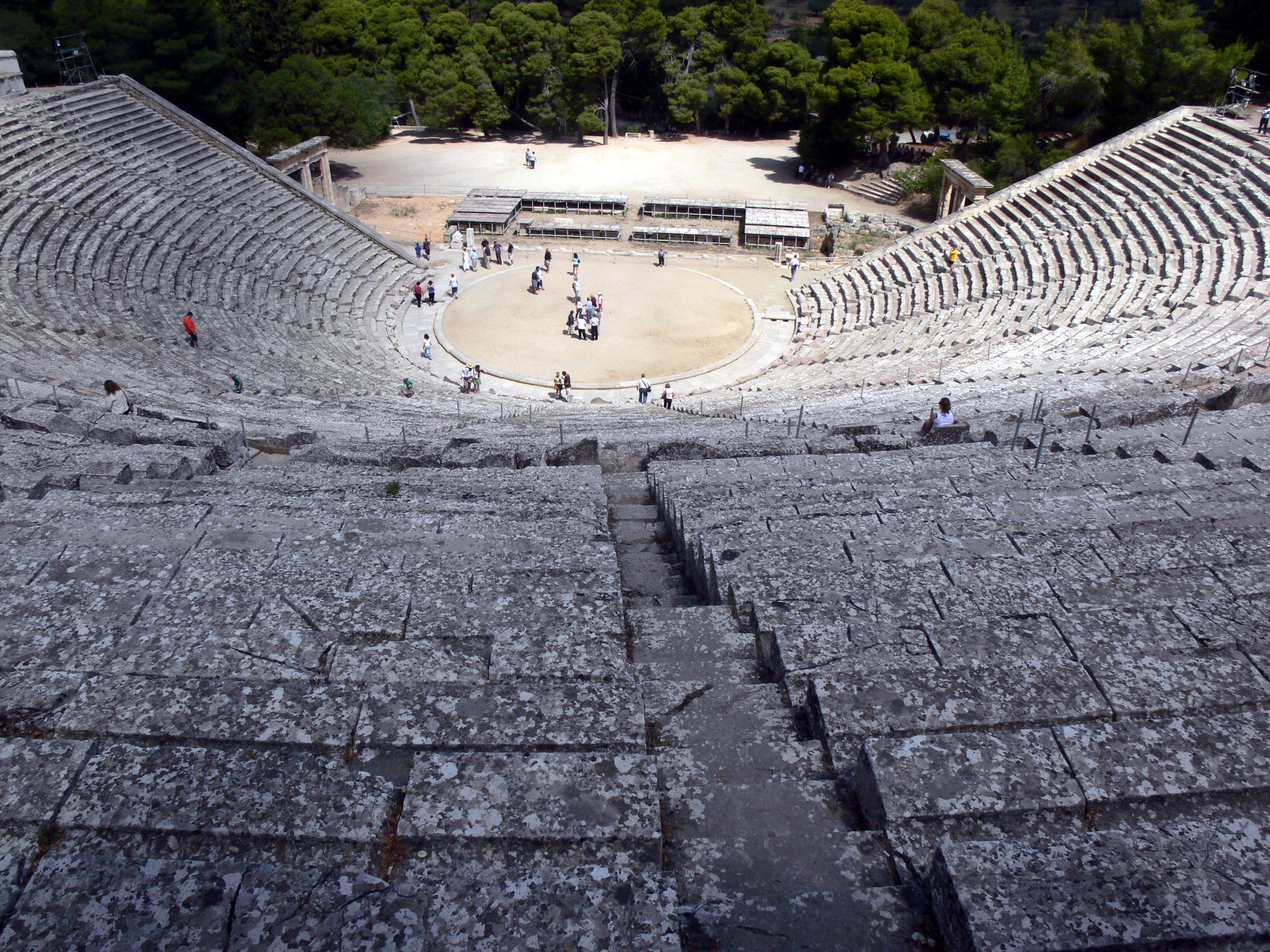 아테네에서 가장 발달한 그리스 극장은 서구 전통의 근원이며, ''극장''(theatre)이라는 단어는 그리스어에서 유래되었다.[2] 이것은 고전 그리스 시대에 광범위하게 퍼져 있던 연극성과 공연 문화의 일부였으며, 아테네 축제, 종교 의식, 정치, 법, 육상 경기와 체조, 음악, 시, 결혼, 장례식, 그리고 ''심포지엄''(향연) 등이 포함되었다.[6] 특히 도시 국가의 많은 축제에 참여하는 것—그리고 도시 디오니시아에 관람객으로 참석하는 것(혹은 연극 공연에 참여하는 것조차)은 시민권의 중요한 부분이었다.[7] 시민 참여에는 또한 웅변가의 수사법에 대한 평가도 포함되었는데, 이는 법정 또는 정치 회의에서의 공연에서 나타났으며, 이 두 곳 모두 극장과 유사하게 이해되었고 점점 더 극적인 어휘를 흡수하게 되었다.[8] 고대 그리스 극장은 비극, 희극, 사튀로스극의 세 가지 유형의 드라마로 구성되었다.[9]