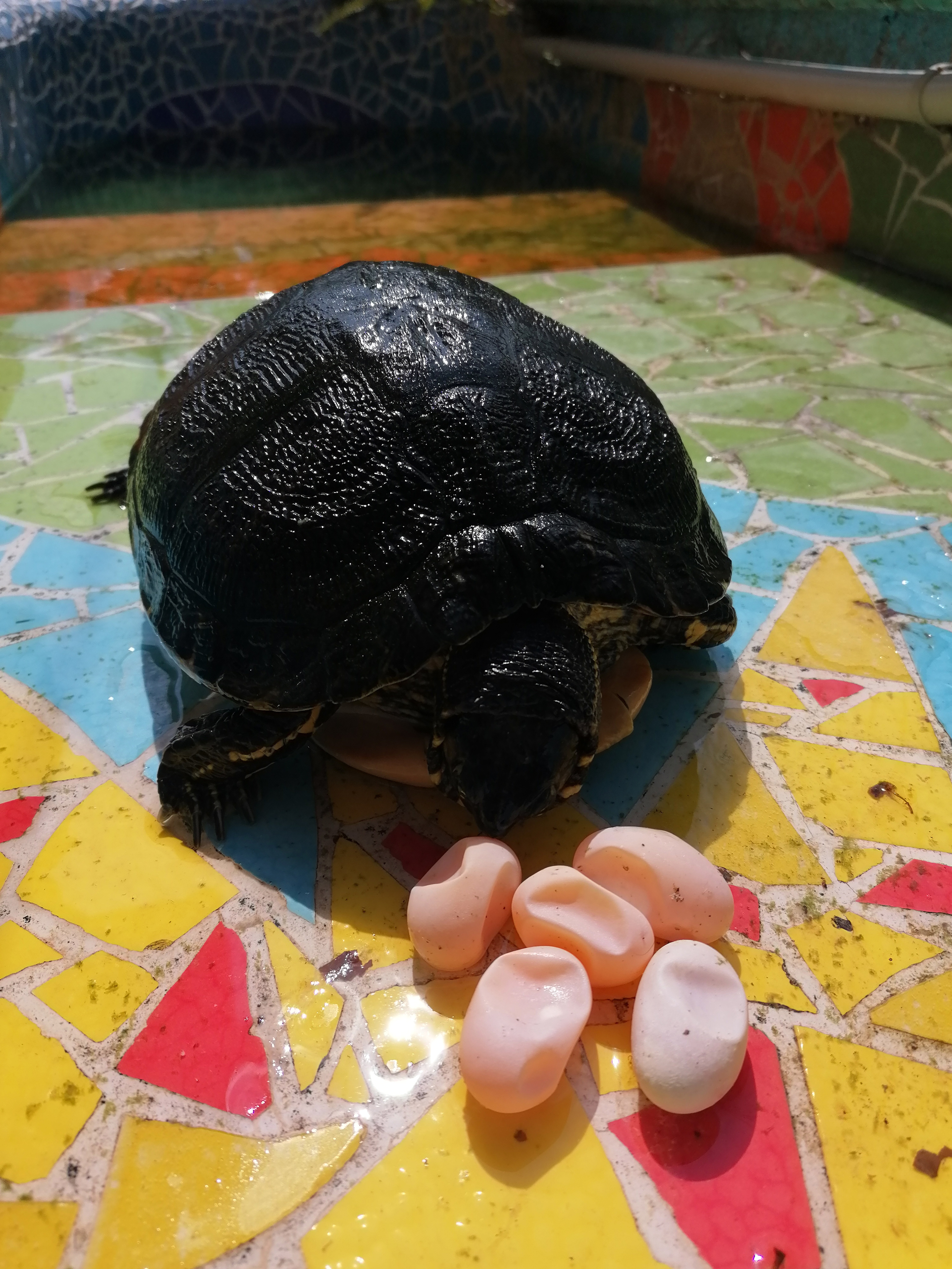 알을 품고 있는 ''T. s. scripta''의 표본 (이탈리아)