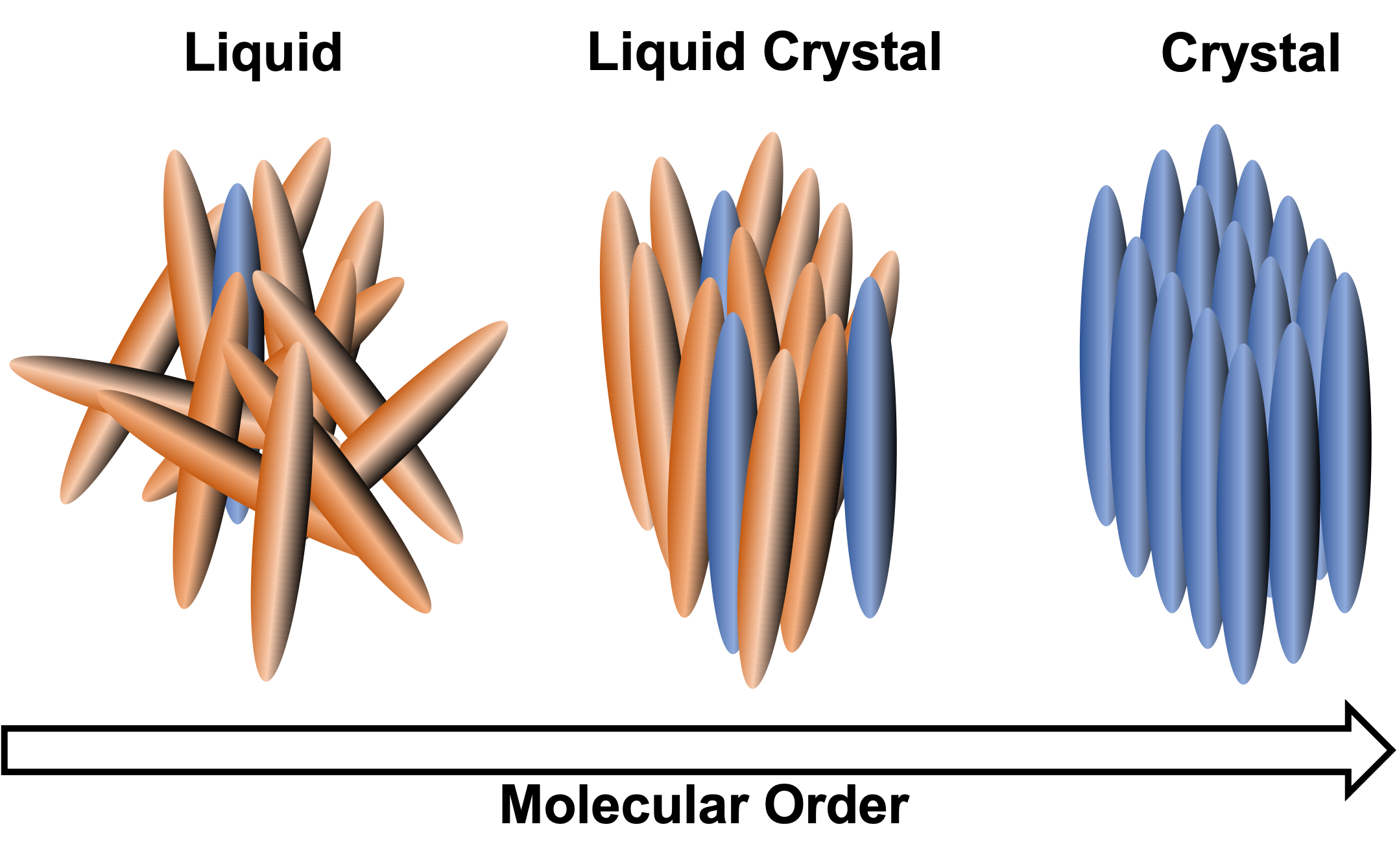 액정은 흐름과 같이 액체처럼 행동하지만, 결정에 가깝게 정렬될 수 있다. 액정의 특징 중 하나는 자발적으로 대칭을 깨는 능력이다.[39] 액정은 액정 디스플레이 (LCD)와 같은 광학 장치에 중요한 응용 분야로 사용되어 왔다. 액정은 특정 방향으로 응집력 있게 정렬되도록 조작할 수 있는 단백질, 작은 분자 또는 고분자로 구성될 수 있다.[38]6. 2. 재료 과학