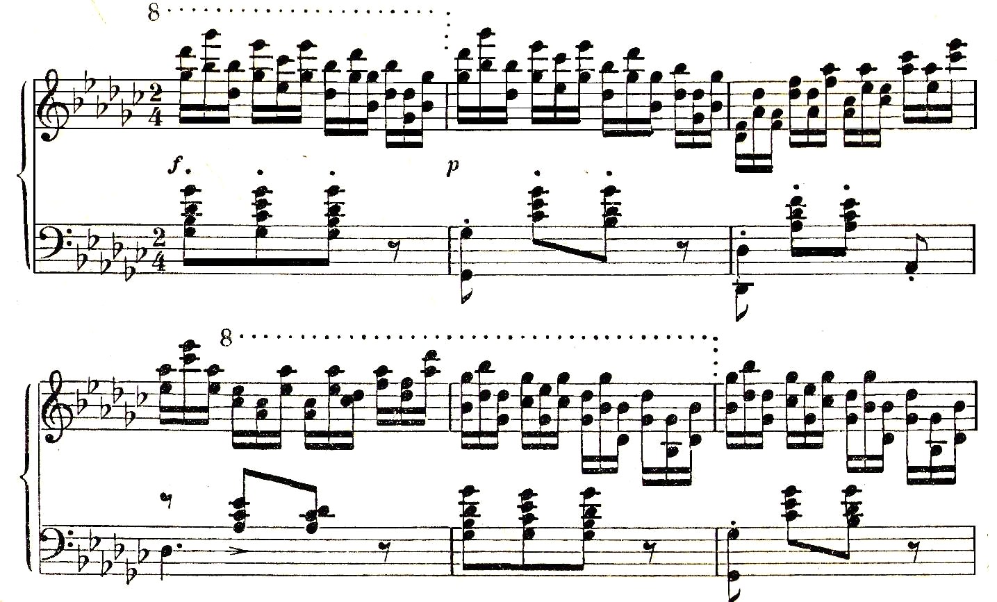 쇼팽의 연습곡은 총 27곡으로, 피아노 연주 스타일의 혁신을 목표로 작곡되었으며, 특정 연주 기술 향상을 목표로 예술적 가치를 인정받아 콘서트 레퍼토리로도 자주 연주된다. - 프레데리크 쇼팽의 연습곡 - 연습곡 Op. 10, 8번 (쇼팽)