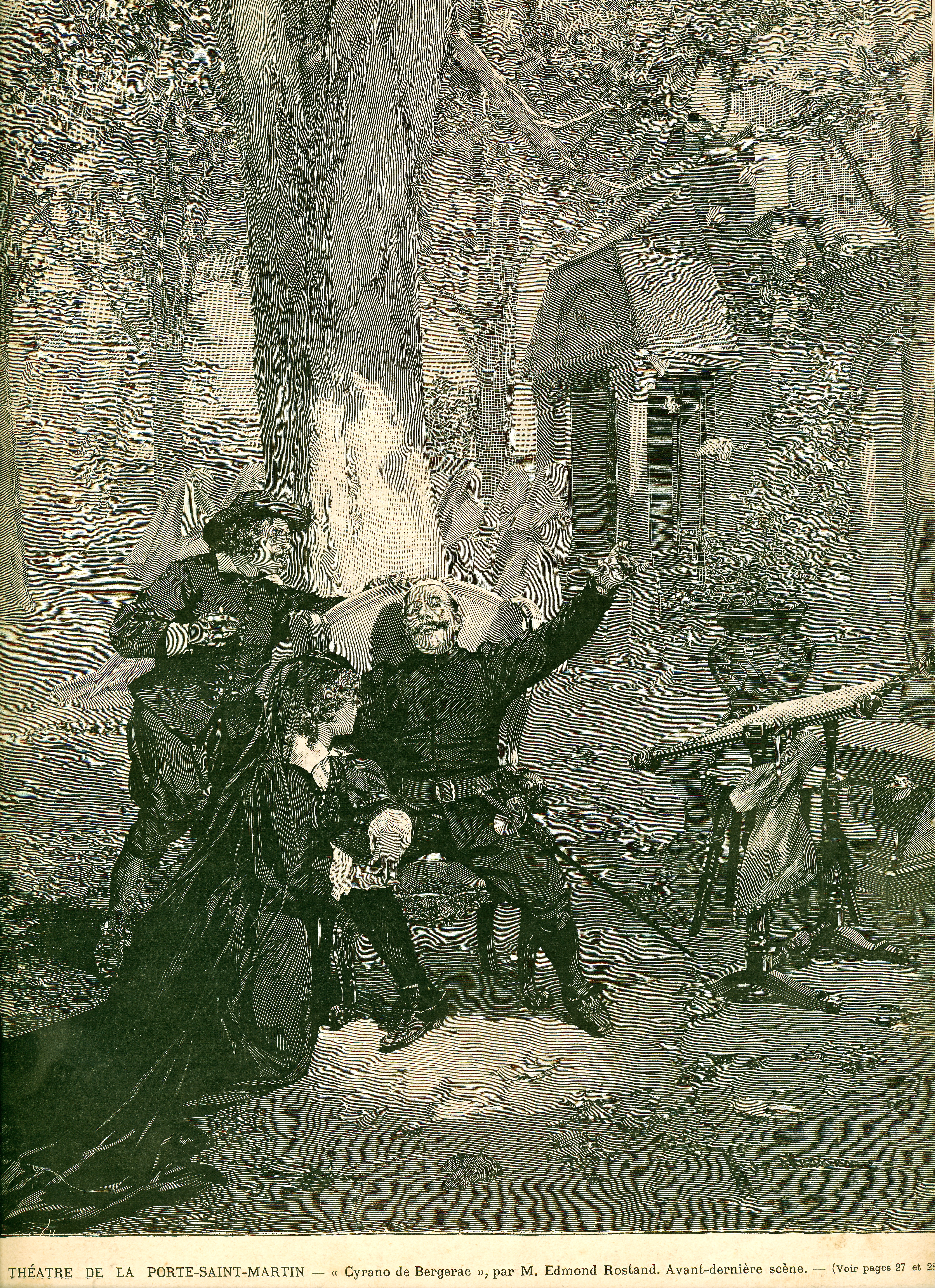 19세기 말 프랑스의 에드몽 로스탕은 희곡 『시라노 드 베르주라크』에서 록산느에게 연정을 품고도 자신의 마음을 숨긴 채, 젊고 미남인 크리스챤과 록산느의 사랑을 도와주는 중년 남자 시라노의 “숨기는 사랑”, “애절한 사랑”을 그려냈다.[23] 이 희곡은 1897년 초연부터 500일간 400회 연속 공연되었고, 이후 전 세계에서 영화와 뮤지컬로 각색되어 공연되고 있다.