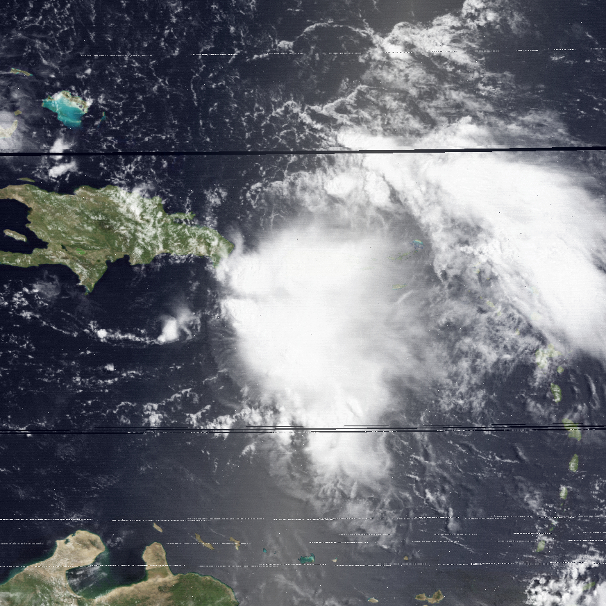 마르티니크 포르 드 프랑스에서는 24시간 동안 69.1mm의 비가 내려 국지적인 홍수가 발생했고, 마르티니크 에메 세제르 국제공항에서는 45mm의 강수량이 기록되었다.[4] 과들루프에서는 178mm에서 203mm 사이의 강수량으로 푸앵트아피트르와 그랑 퐁 사이의 지역에 홍수가 발생했다.[4] 생바르텔레미에는 12.4mm의 비가 내렸다.[4] 앤티가에서는 58.4mm의 강수량이 기록되었고, 순간 최대 풍속은 84km/h에 달했으며, 바부다에서는 강수량이 39.4mm에 달하고 순간 최대 풍속은 74km/h에 달했다.[4] 세인트키츠에서는 강수량이 38.1mm로 최고치를 기록했고, 순간 최대 풍속은 56km/h를 기록했다.[4]
