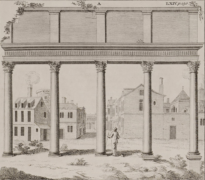 르네상스 시대에는 고대 그리스와 로마 건축 양식이 부활하면서 주랑이 다시 주목받기 시작했다. 카를 5세 궁전(1527), 베르니니의 성 베드로 광장 열주(1660년대), 루브르 박물관 열주(1670) 등이 대표적인 예시이다.[3][4][5] 바로크 시대에는 웅장하고 화려한 주랑이 많이 사용되었으며, 건물의 권위와 위엄을 나타내는 데 기여했다.2. 3. 신고전주의