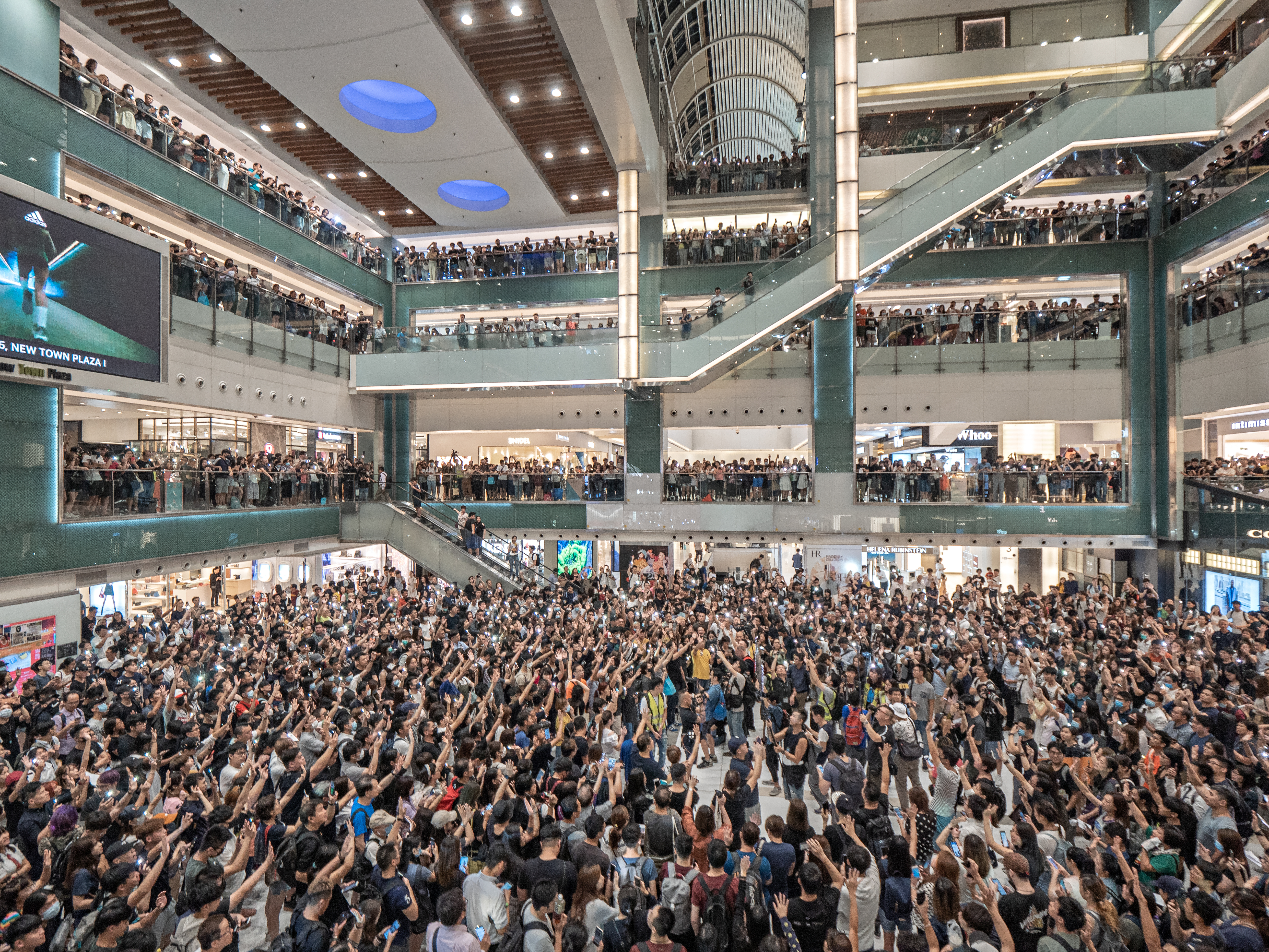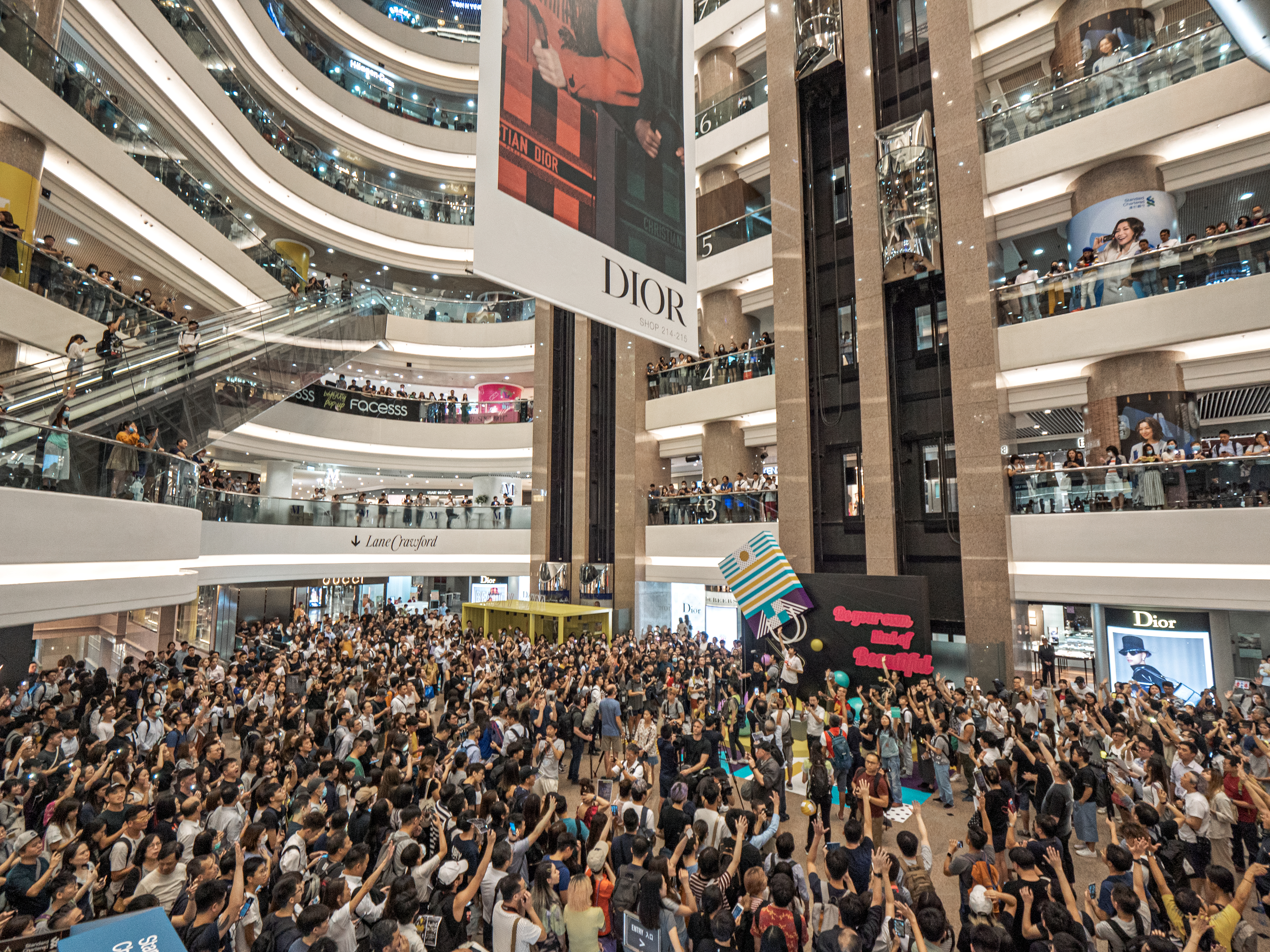 《願榮光歸香港》再響遍多區商場 千人迫爆新城市廣場