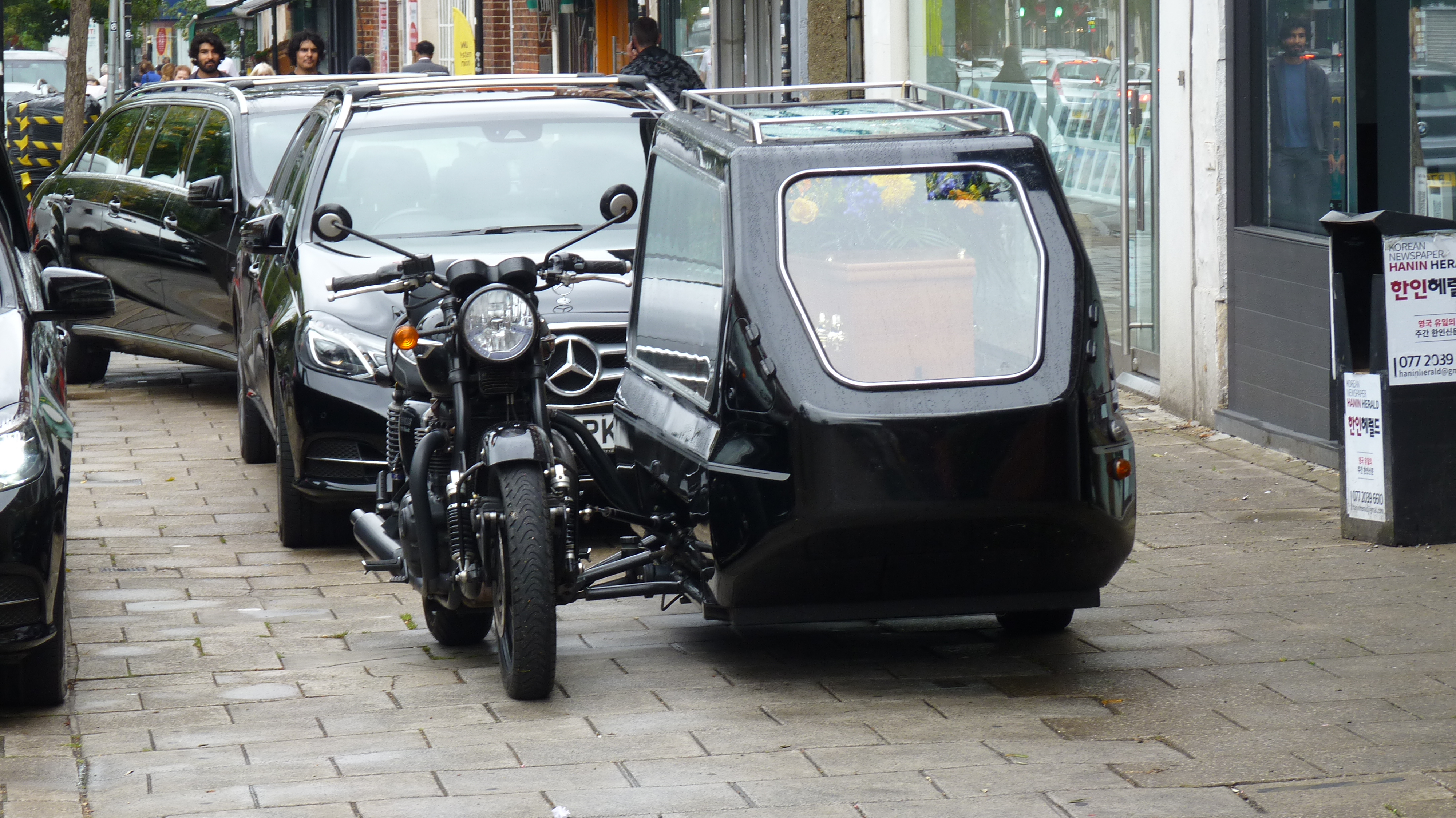 싱가포르에서는 대부분의 일반 장례차량은 도요타 하이에이스, 닛산 어반, 메르세데스-벤츠 비토와 같은 상용 밴 섀시를 기반으로 제작되며, 고급 또는 전통적인 중국식/인도식 장례차량은 미쓰비시 후소 캔터나 이스즈 엘프와 같은 트럭 섀시를 기반으로 제작된다. 싱가포르에는 메르세데스-벤츠 승용차 섀시를 기반으로 제작된 리무진 장례차량도 일부 있다.3. 2. 오토바이 영구차