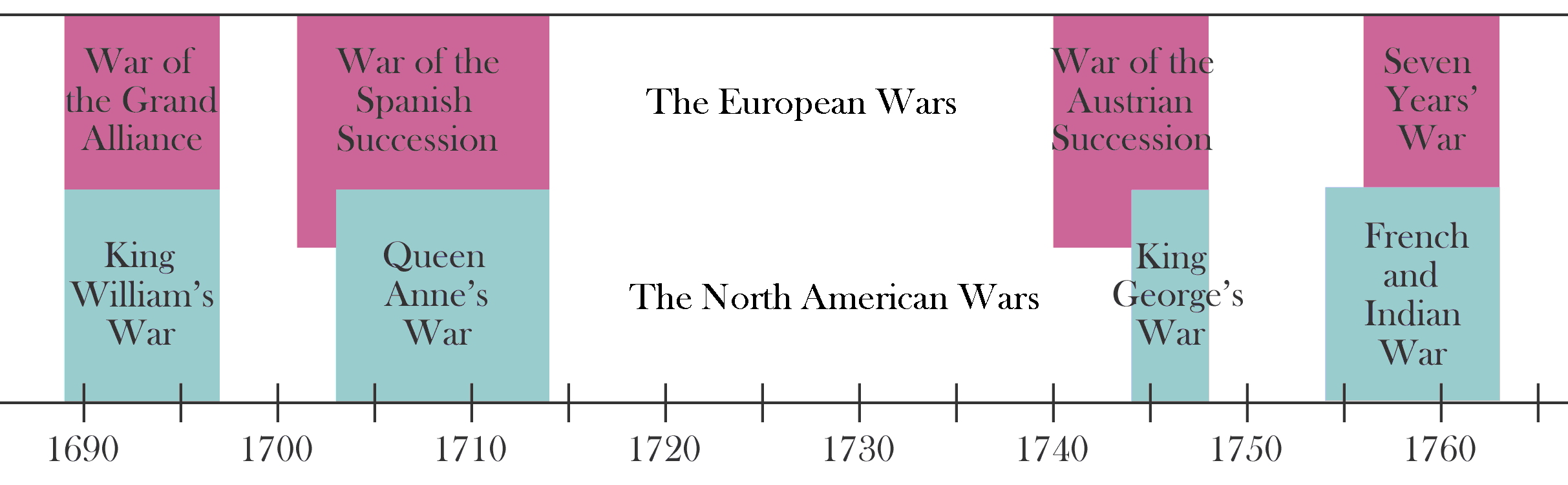 조지 왕 전쟁 (1744년 - 1748년) | 유럽에서의 오스트리아 왕위 계승 전쟁과 동시 발생 북미 식민지 간의 영토 분쟁 지속 |
