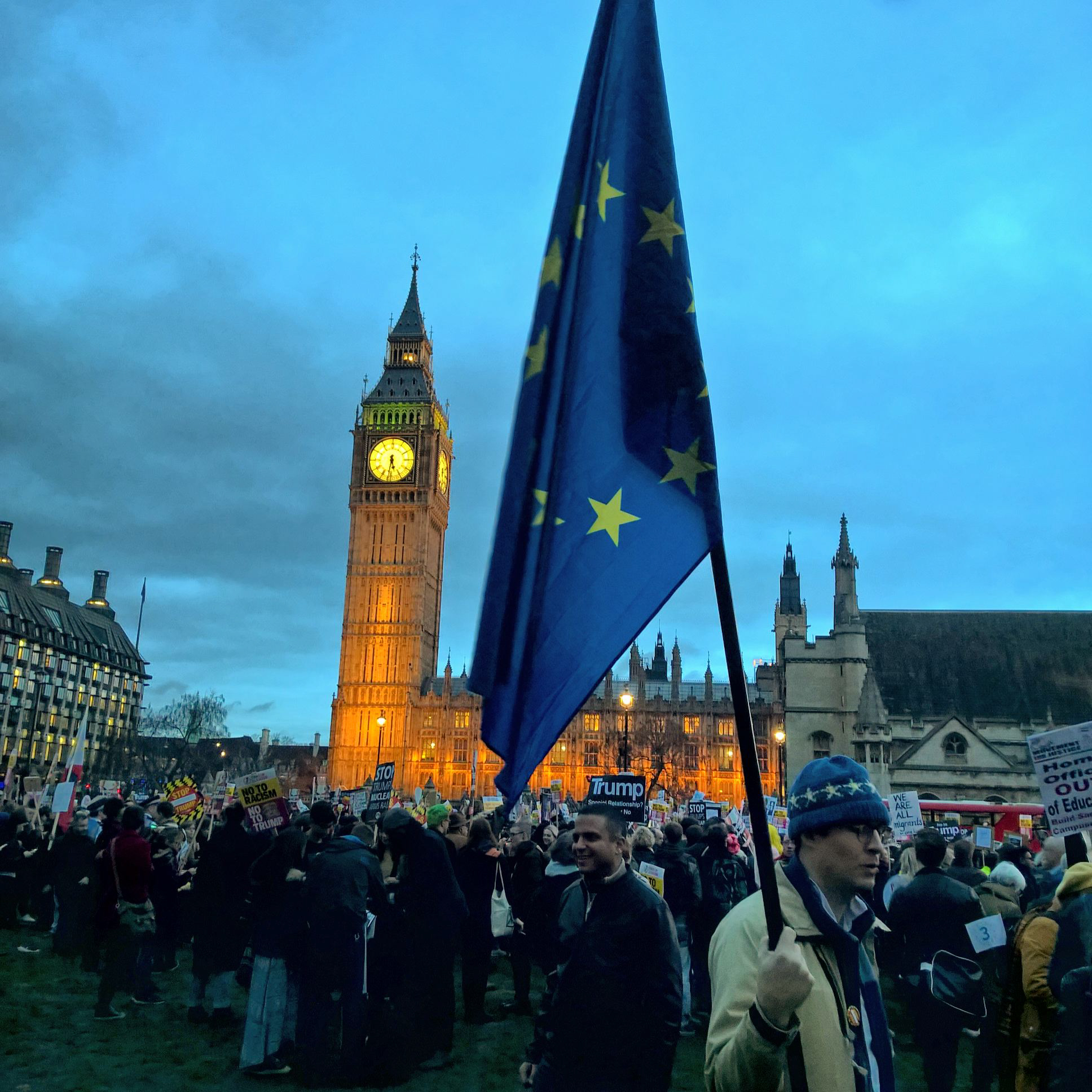 셋째, 영국은 1972년 유럽공동체법과 1992년 마스트리흐트 조약 비준을 통해 유럽 연합 회원국이 되었다. 연합의 아이디어는 윈스턴 처칠을 포함한 유럽 지도자들에 의해 오랫동안 구상되어 왔으며, 그는 1946년 "유럽합중국"을 촉구했다. EU 법은 그 운영 범위 내에서 의회법 간의 충돌에서 우선하는 것으로 오랫동안 여겨져 왔지만,[36] 회원국과 시민들은 EU 법의 범위를 통제하고 유럽 의회, 유럽 연합 이사회, 집행위원회에서의 공동 대표를 통해 국제 관계에서 주권을 확대한다. 이 원칙은 R 대 교통부 장관, 팩터타임 유한회사 사건에서 시험을 받았는데, 여기서 어업 회사는 1988년 상선법에 따라 영국 주주가 75%를 차지해야 한다는 요건에 대해 주장했다.[37]