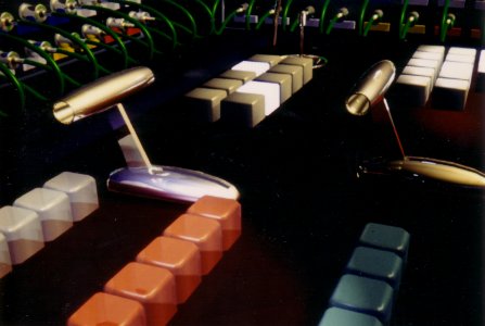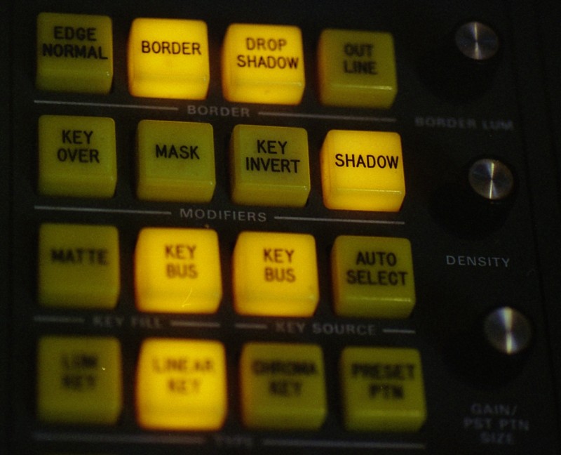 - 키 버스(key bus): 합성을 위한 버스로, 프로그램 버스 위에 키잉할 신호를 선택하는 데 사용된다. 프로그램에 표시되는 디지털 화면 그래픽 이미지는 "필(fill)"이라고 하며, 키의 반투명도를 조절하는 마스크는 "소스(source)"라고 한다.
