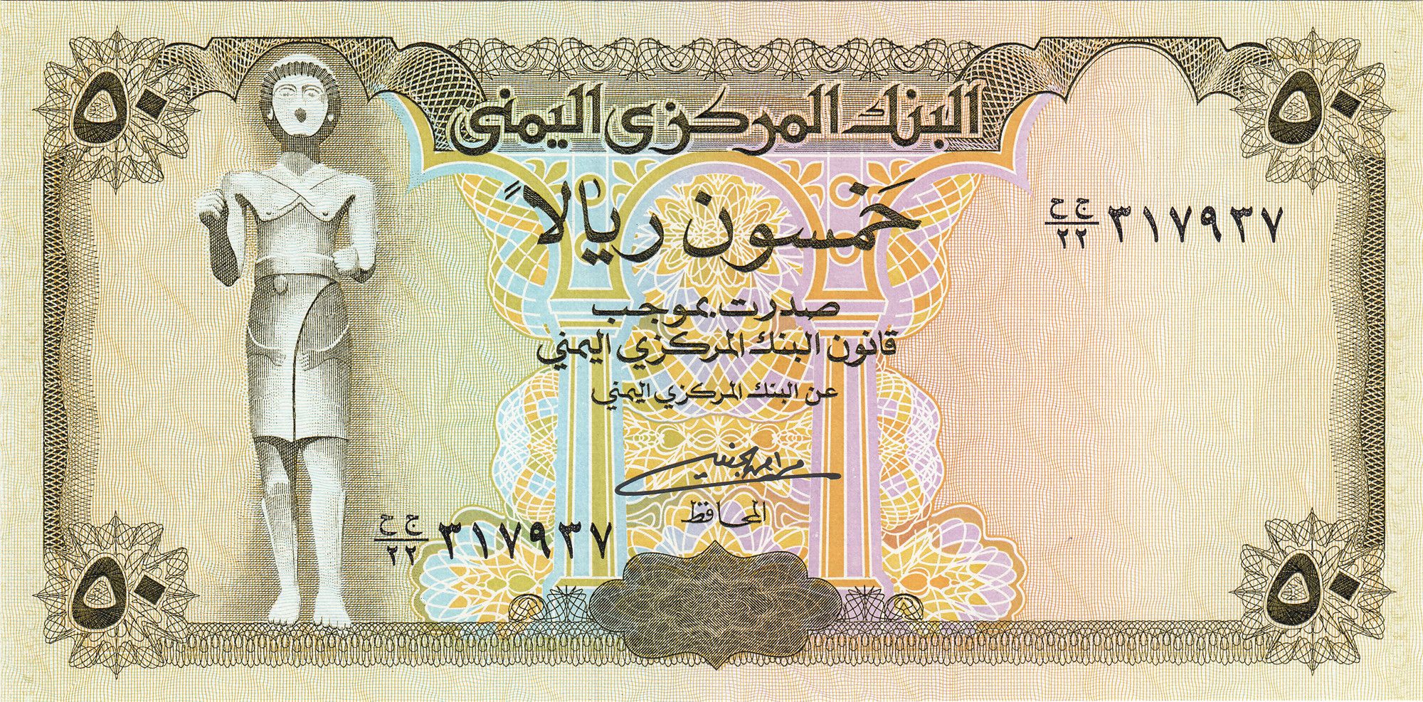 ريالar 50올리브색하람의 고대 왕 마아드카리브의 동상하드라마우트시밤 도시1993