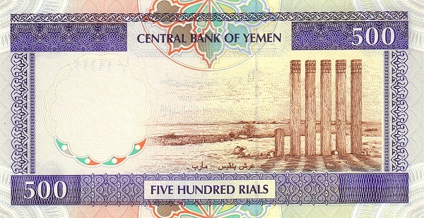 ريالar 500보라색사나아 중앙은행 건물마리브의 빌키스 여왕의 왕좌1997