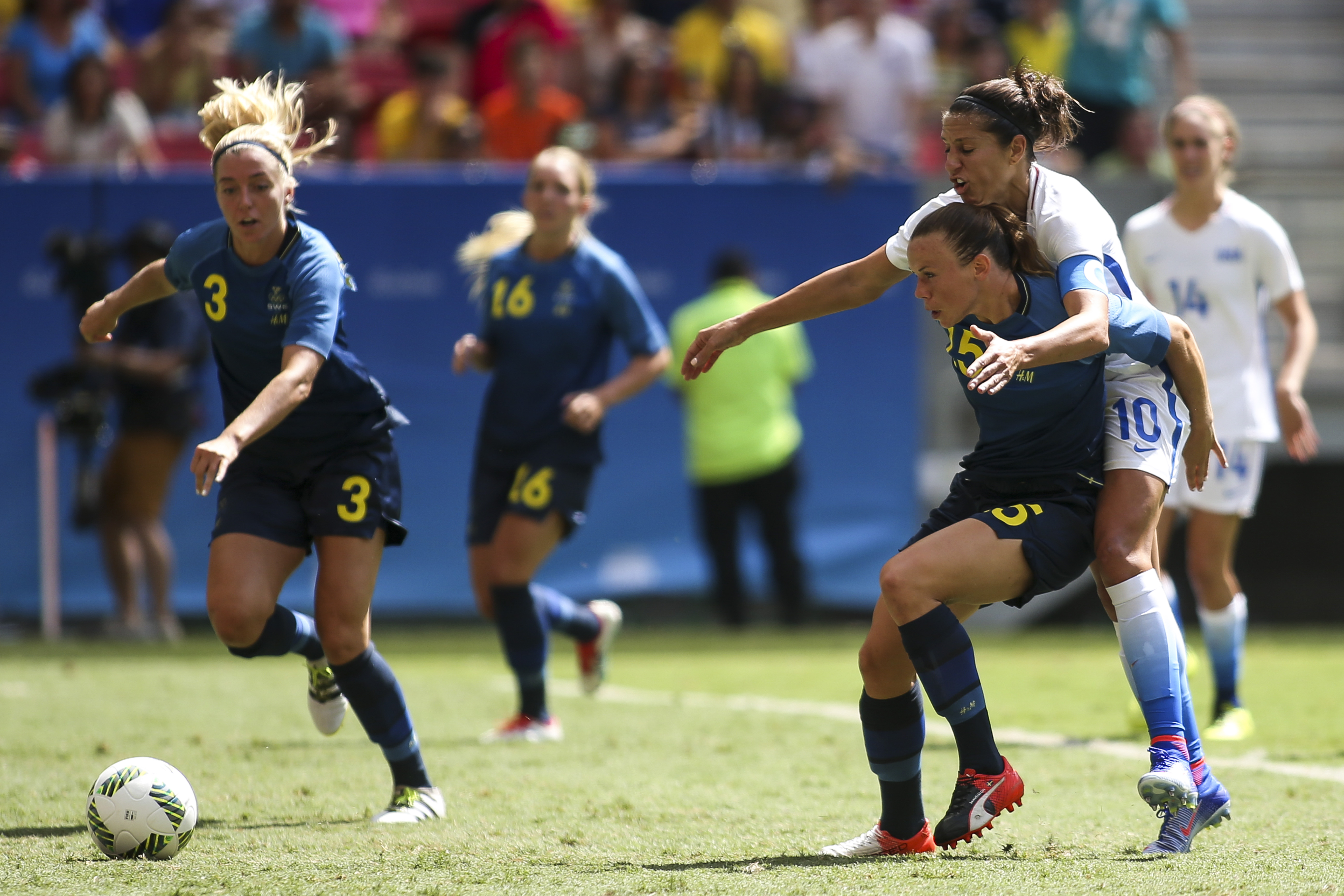 사라 라르손은 스웨덴의 여자 축구 선수로, 다양한 클럽에서 활동하며 스웨덴 여자 축구 국가대표팀에서 100경기 이상 출전, UEFA 여자 유로, FIFA 여자 월드컵, 하계 올림픽 등 주요 국제 대회에 참가, 2000년 스웨덴 올해의 신인상을 수상, 린셰핑 FC 소속으로 여자 스벤스카 쿠펜에서 2회 우승했으나 2014년 임신으로 선수 생활을 마감했다. - 오스트레일리아의 외국인 여자 축구 선수 - 나딘 앙거러