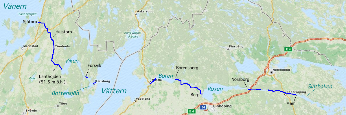 이후 베네른 호(해발 44m)에 도착하며, 트롤헤테 운하를 통해 괴테보리(Gothenburg)와 스웨덴 서해안으로 이어진다.