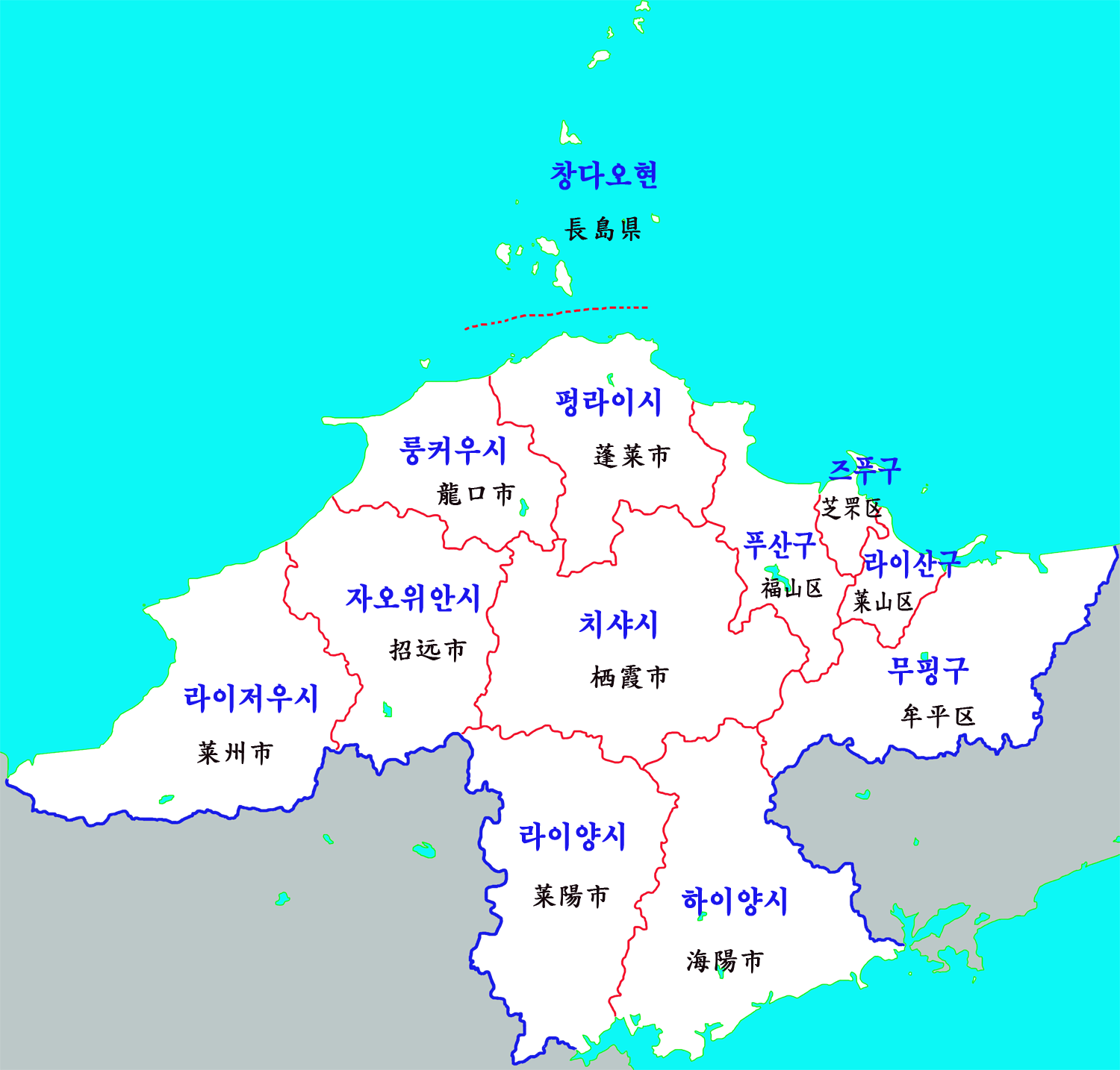옌타이시는 중화인민공화국 산둥반도 북부에 위치한 지급시로, 보하이만 남쪽에 자리 잡고 있다. 지리적으로 해안선 길이가 909km에 달하며, 산둥성에서 칭다오시에 이어 두 번째로 큰 공업 도시이다. 옌타이는 신석기 시대 유물이 발견된 유서 깊은 곳으로, 1858년 톈진 조약 이후 외국에 개항하여 급속도로 도시화되었다. 현재 5개의 시할구와 6개의 현급시로 구성되어 있으며, 사과와 포도주 생산, 경제 기술 개발구, 관광 등으로 유명하다. 옌타이는 한국을 포함한 여러 국가의 도시들과 자매 결연을 맺고 있으며, 옌타이 대학교, 옌타이 한국학교 등 교육 시설도 갖추고 있다.