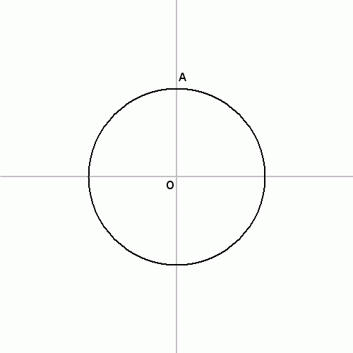 2. 원 O 위의 점 A를 골라 직선 OA를 그린다.