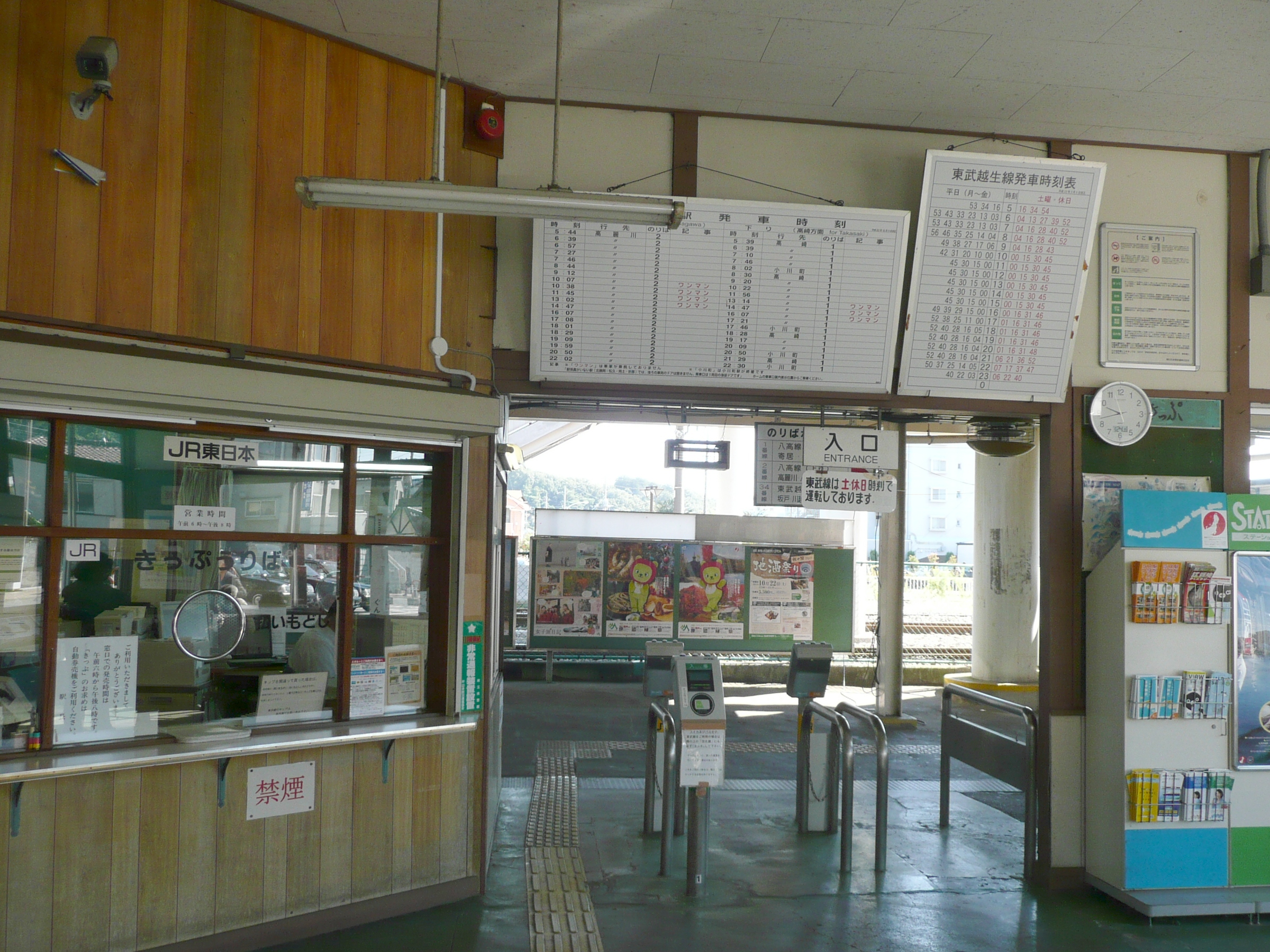 2019년 3월부터 JR 하치코선과의 개찰구가 분리됨에 따라 오고세선 전용 자동 개찰기, 자동 발권기, 추가 요금 정산기가 설치되어 자동 발권기에서 도부 철도의 각종 승차권을 구입할 수 있게 되었다. 또한, 승강장 폭이 좁기 때문에 역 사무실은 개찰구 내 승강장 말단(화장실 안쪽)에 설치되어 있으며, 인터폰을 설치하여 대응하고 있다.