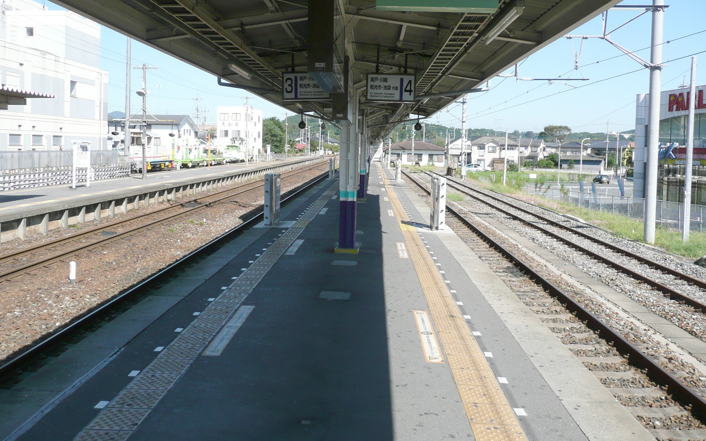 2013년 10월부터 사카도 방면에 엘리베이터를 설치하기 위해 역 말단(묘카쿠 방면)의 화장실 설비를 철거하고 승강장 북쪽에 약 1량 분량의 승강장을 연장하여 다음 해 1월에 열차 정차 위치를 변경했다.[22]