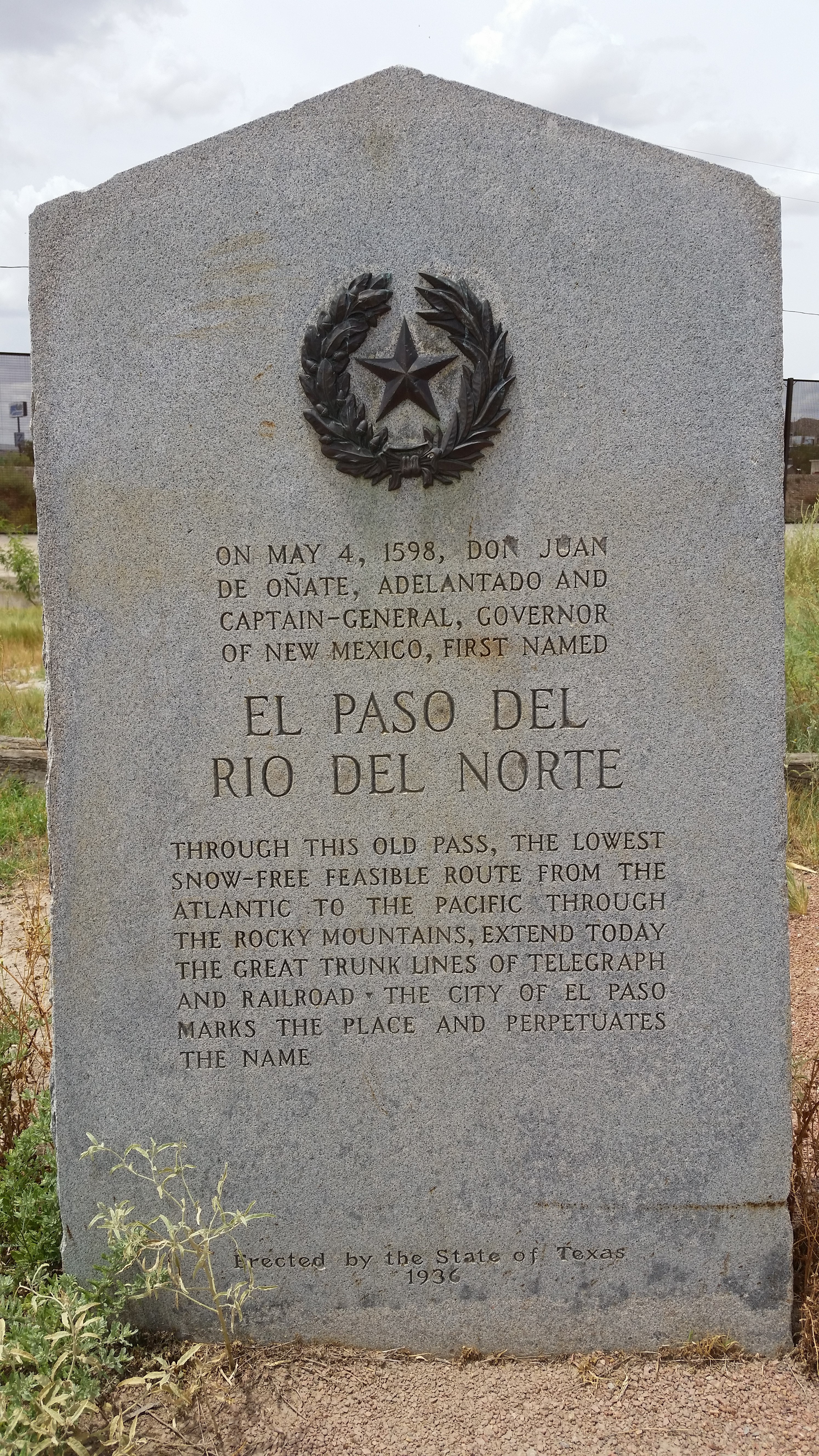 돈 후안 데 오냐테와 엘 파소 델 리오 노르테의 텍사스 역사 표지판
