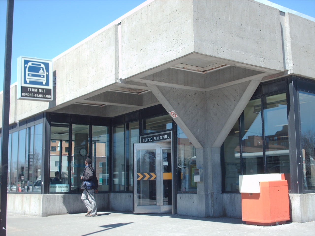역 동쪽 끝에는 넓은 메자닌이 있으며, 이곳은 세 개의 출구로 이어진다.[5] 이 중 두 개의 출구는 버스 승강장과 연결되어 있다.[5] 출입구는 셔브룩 거리 7950, 7955번지와 오노레-보그랑 거리 4755번지에 위치한다.