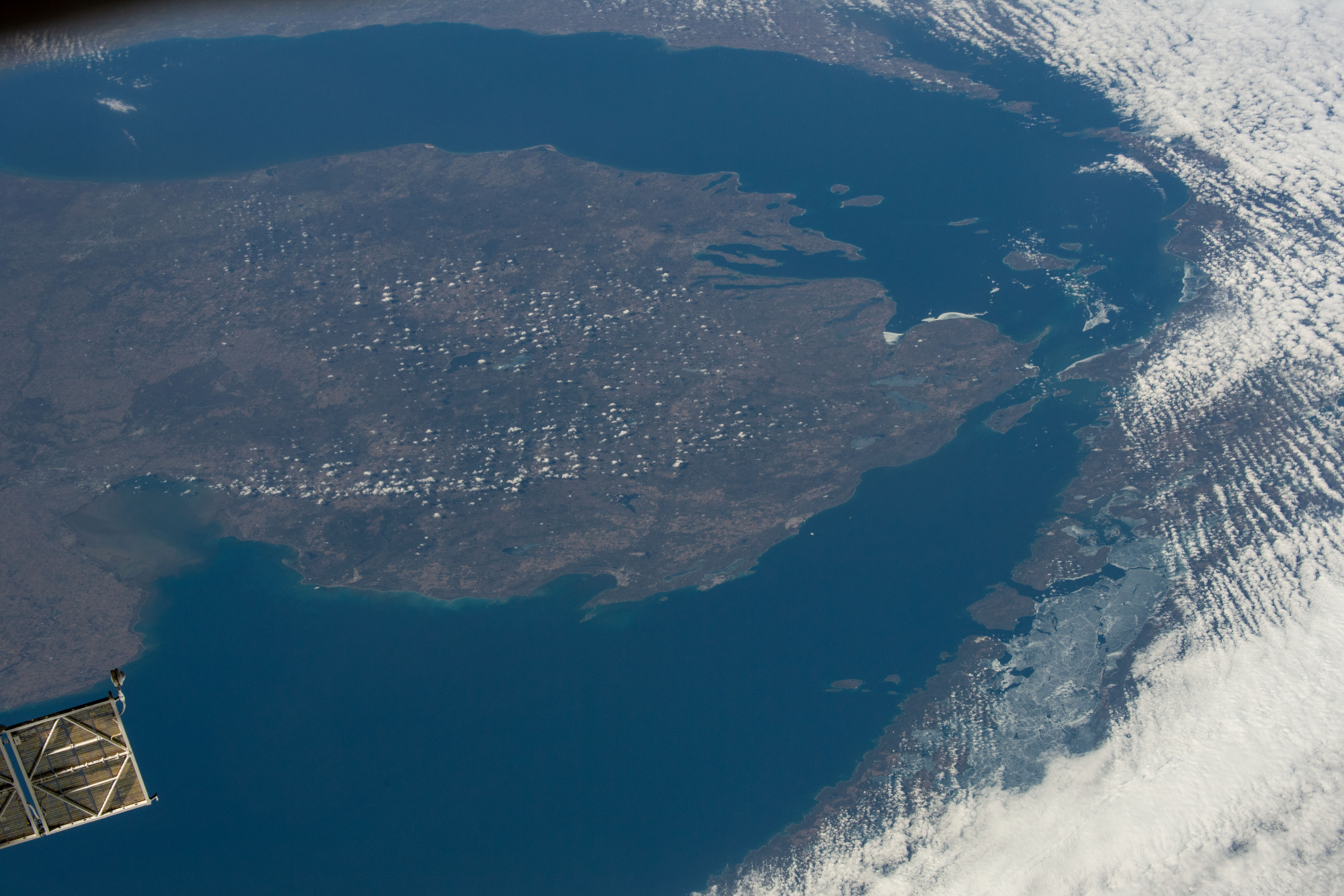 오대호 사이에는 여러 반도가 있는데, 도어 반도, 미시간주의 반도들, 온타리오 반도가 있다.[12] 이 반도들 중에는 브루스, 키위노, 릴라노, 나이아가라, 섬 반도와 같이 더 작은 반도들도 있다. 반도에 있는 인구 밀집 지역으로는 미시간주의 그랜드래피즈, 플린트, 디트로이트와 온타리오주의 런던, 해밀턴, 브랜트퍼드, 토론토가 있다.[12]2. 7. 해양과의 연결