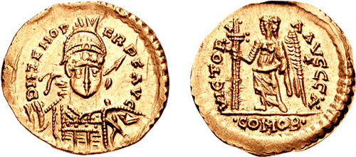 참고 | 오도아케르는 몇몇 주화에서 "플라비우스"라고 불린다. 이 이름은 5세기에 들어 칭호가 되었다. |