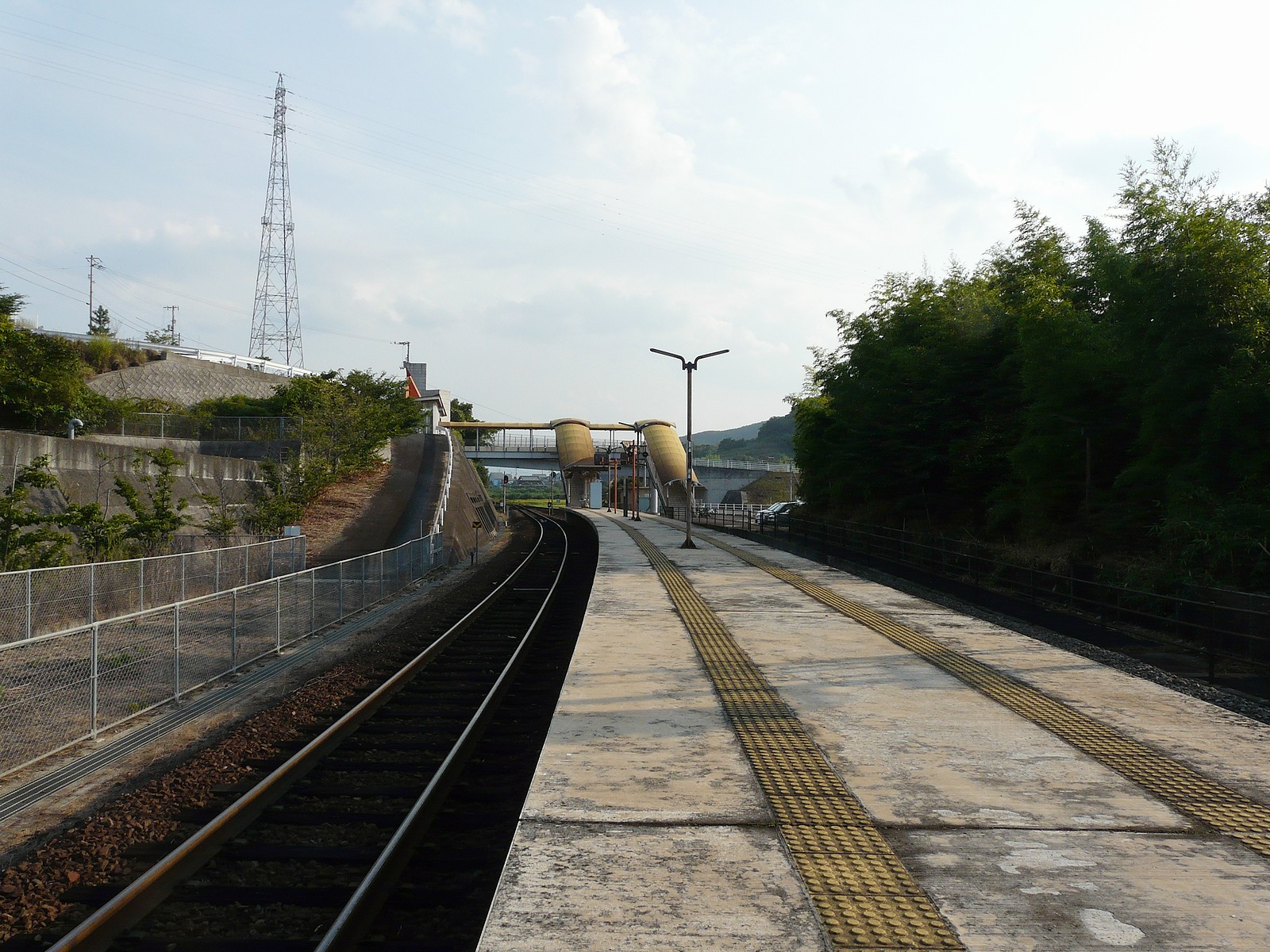 역 승강장의 모습. 역 건물은 왼쪽에 보인다. 육교는 오른쪽으로 뻗어 있어 선로 반대편에서 역으로 접근할 수 있게 해준다.
