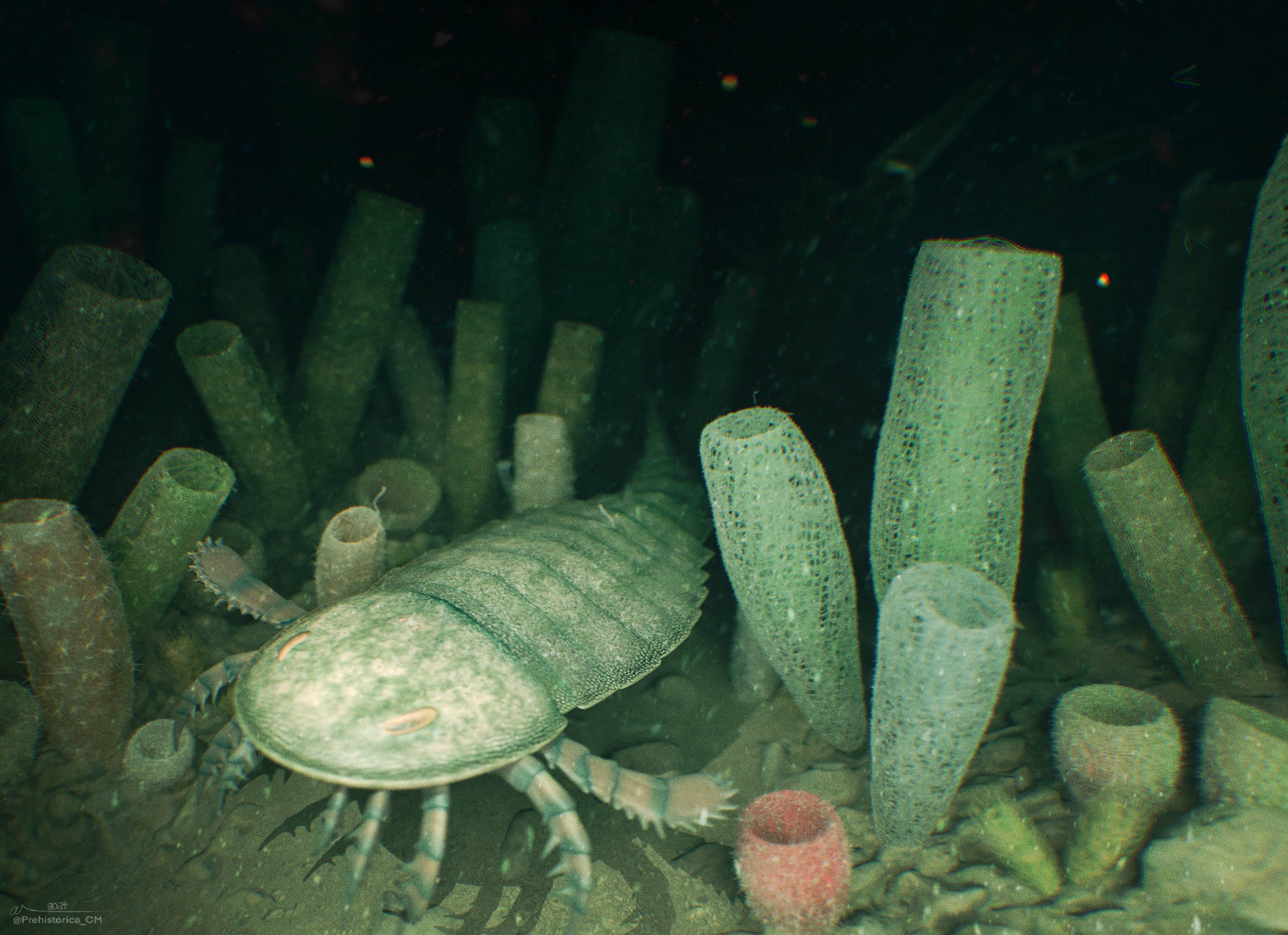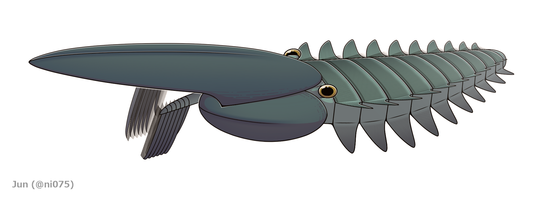 특히 삼엽충은 풍부하고 다양했으며 많은 지역에서 빠른 다양화를 경험했다.[56] 오르도비스기의 삼엽충은 캄브리아기의 전신과 매우 달랐다. 많은 삼엽충은 원시 광익류와 앵무조개와 같은 포식자로부터 자신을 보호하기 위해 기괴한 가시와 결절을 발달시켰고, ''Aeglina prisca''와 같은 다른 삼엽충은 유영 형태로 진화했다. 어떤 삼엽충은 진흙 바다 바닥을 갈아엎기 위한 삽 모양의 주둥이를 발달시키기도 했다. 삼각형이라고 알려진 또 다른 특이한 삼엽충 분류군은 머리 방패 주변에 넓고 구멍이 뚫린 가장자리를 발달시켰다.[57] ''Asaphus kowalewski''와 같은 일부 삼엽충은 포식자를 감지하는 데 도움이 되는 긴 눈자루를 진화시킨 반면, 다른 삼엽충의 눈은 완전히 사라졌다.[58] 분자 시계 분석에 따르면 초기 거미류가 오르도비스기 말에 육지에서 살기 시작했다고 한다.[59]