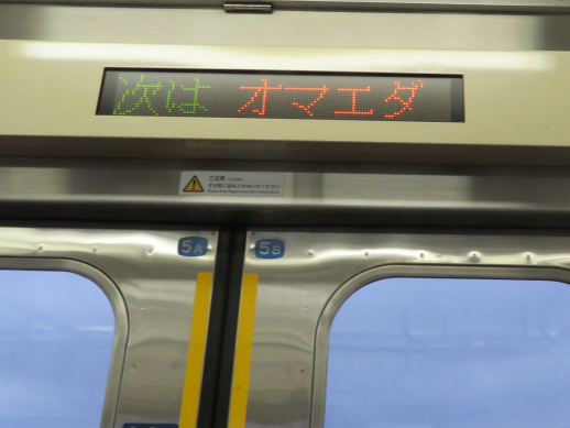 다음 역 안내에서 역 이름을 가타카나로 표기하면 "다음은 오마에다(다음은 너다)"가 되어, 마치 협박을 하는 듯한 모습 때문에 특이 지명, 특이 역명 중 하나로 소개되기도 한다.[6]