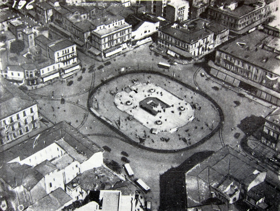 1925년부터 1930년까지 피레아스와 아테네 사이의 지하철이 건설되면서 오모니아 광장 재설계가 필요해졌다. 오모니아 광장은 원형으로 바뀌었고, 지하철역 입구에는 대리석 바가 설치되었다. 광장은 유럽의 원형을 닮아가기 시작했고 중요한 상업적 역할을 얻게 되었다. 지하철이 존재했기 때문에 지하 환기 시스템을 구축해야 했고, 1931년 당시 아테네 시장이었던 스피로스 메르쿠리스는 환기구의 개구를 덮기 위해 신화 속 뮤즈를 나타내는 조각상 8개를 설치할 것을 제안했다. 문제는 해결되었지만, 그 결과는 아테네 시민들의 미적 기대를 충족시키지 못했고 조각상들은 제거되었다.[2]3. 4. 1950년대