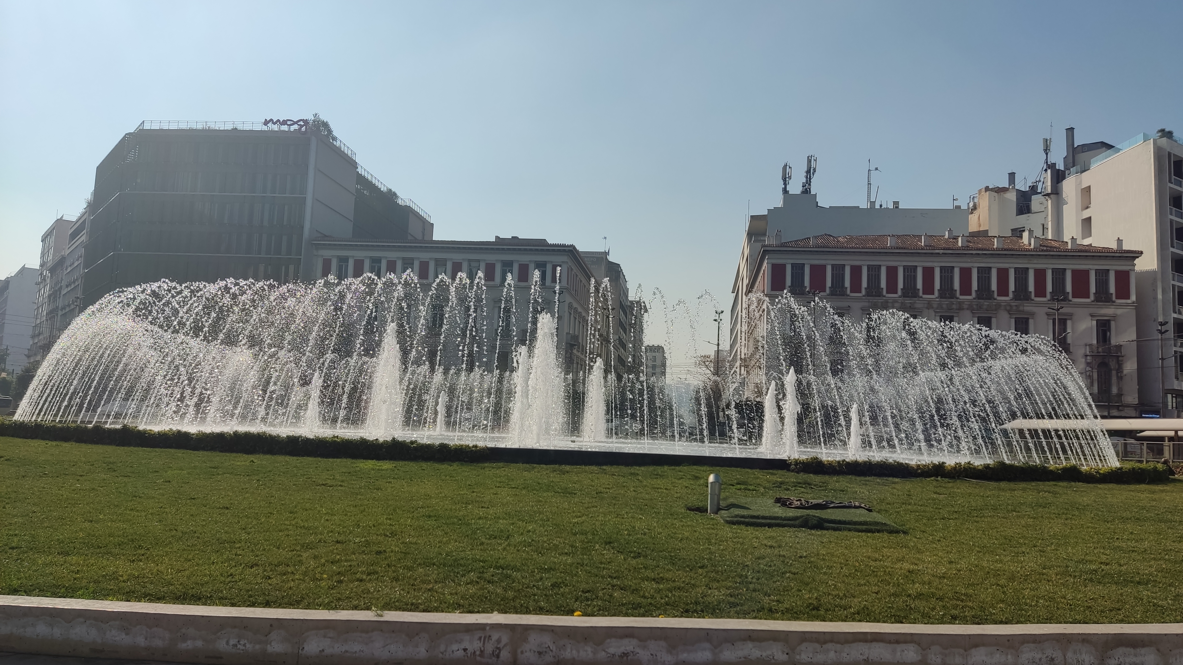 1992년 11월, 아테네 메트로 적색 노선과 새로운 역 건설을 위해 해당 지역을 발굴하면서 분수와 '러너' 조각상이 파괴되었다.[2] 1994년 5월, 새로운 '러너' 조각상을 건설하여 현재 아테네 힐튼 호텔 건너편으로 옮겼다.[2]3. 7. 2019년~2020년