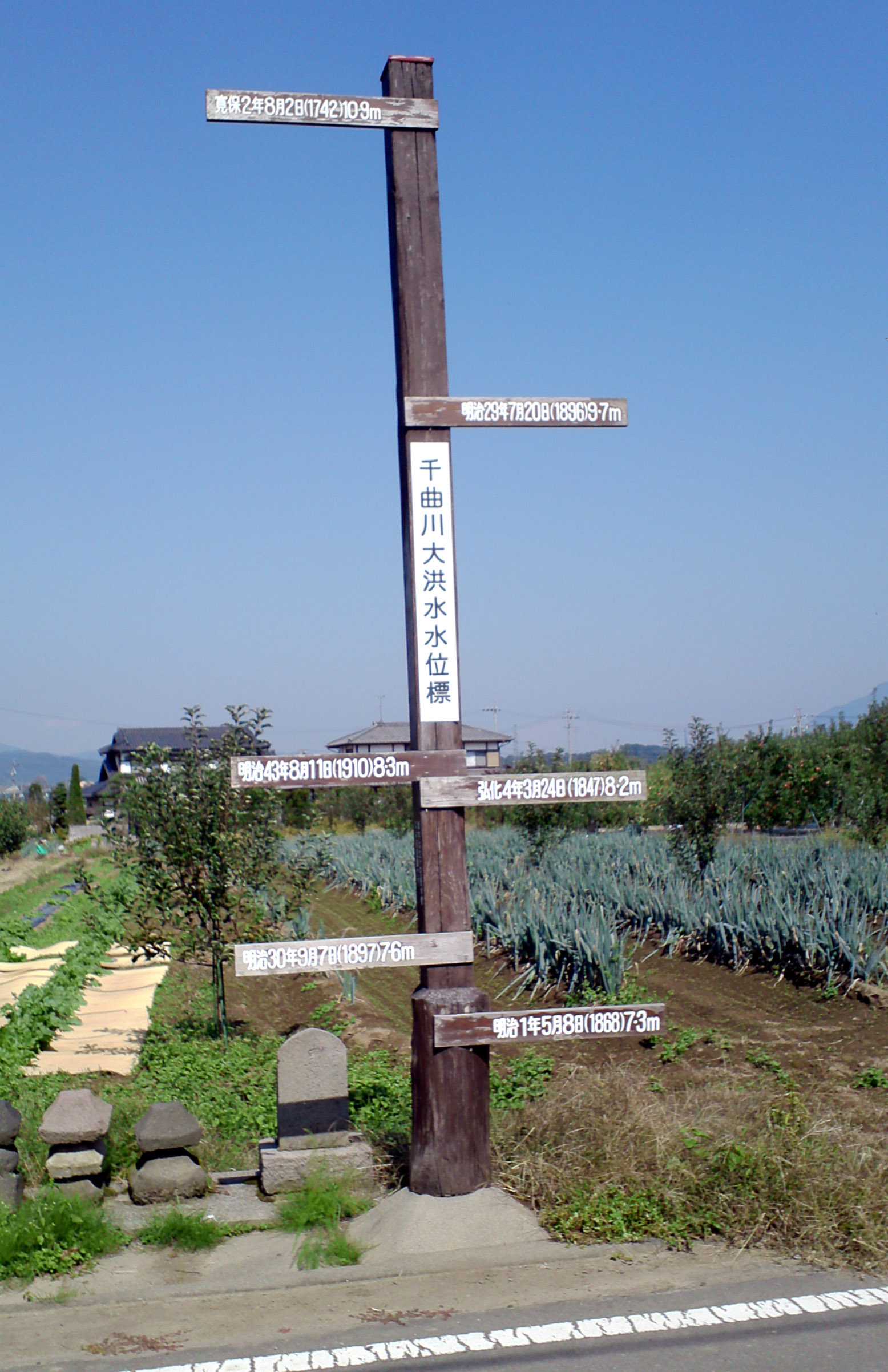 에도 시대에는 덴료였지만, 후쿠시마 마사노리가 에도 막부에 의해 히로시마번 50만 석에서 가와나카지마번 2만 석으로 감봉되어 생애의 마지막을 보낸 곳이 되었다. 1742년, 술의 만수 혹은 칸포 대홍수라고 불리는 치쿠마가와의 대홍수로 마을 지역에도 광범위한 피해가 있었다.