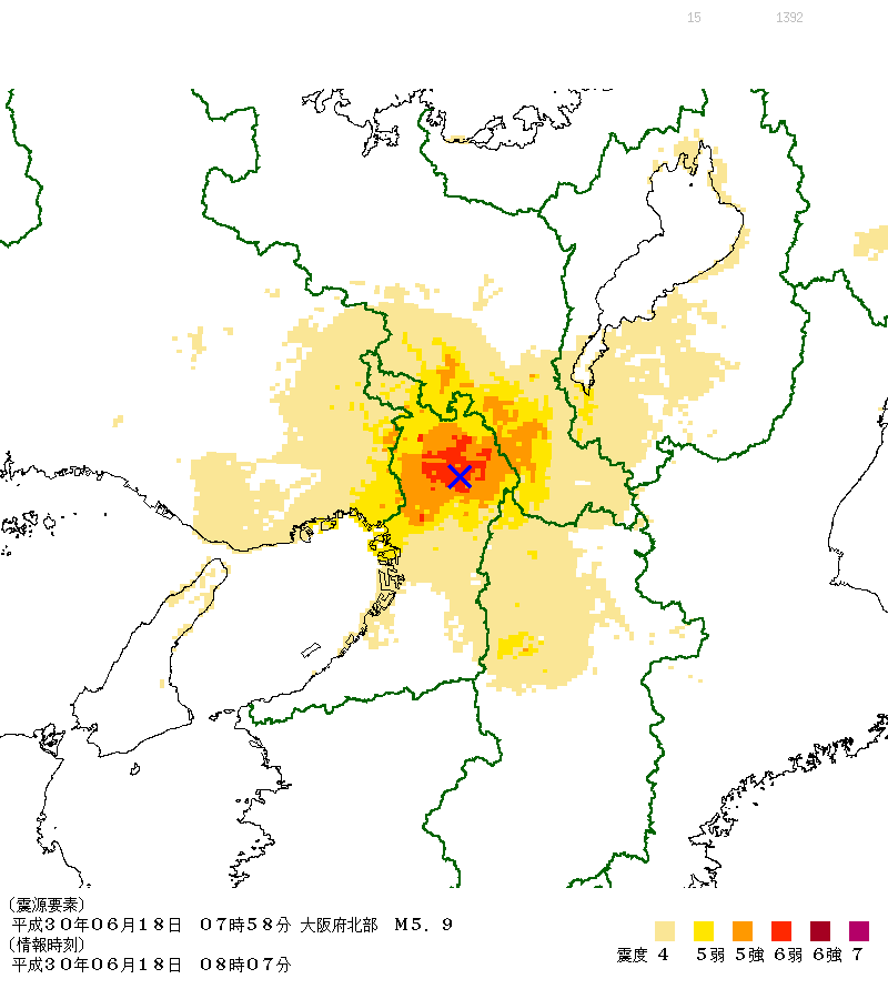 최대 진도 지역 | 오사카시 기타구 다카쓰키시 히라카타시 이바라키시 미노오시 |