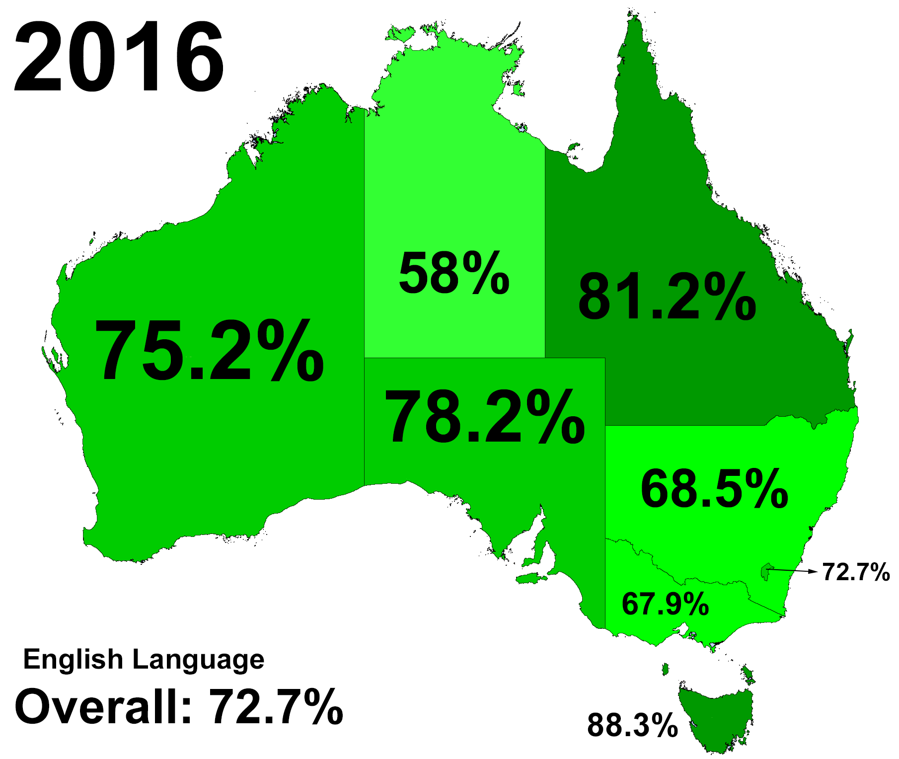 | 주요 민족 | 유럽계 (54.65%) 앵글로-켈트계 (42.19%) 잉글랜드계 (32.99%) 아일랜드계 (9.48%) 스코틀랜드계 (8.56%) 독일계 (4.04%) 네덜란드계 (1.50%) 남부 및 동유럽계 (10.52%) 이탈리아계 (4.36%) 그리스계 (1.67%) 폴란드계 (0.82%) 몰타계 (0.78%) 크로아티아계 (0.65%) 기타 (3.27%) 오스트레일리아계 (단독) (14.82%) |