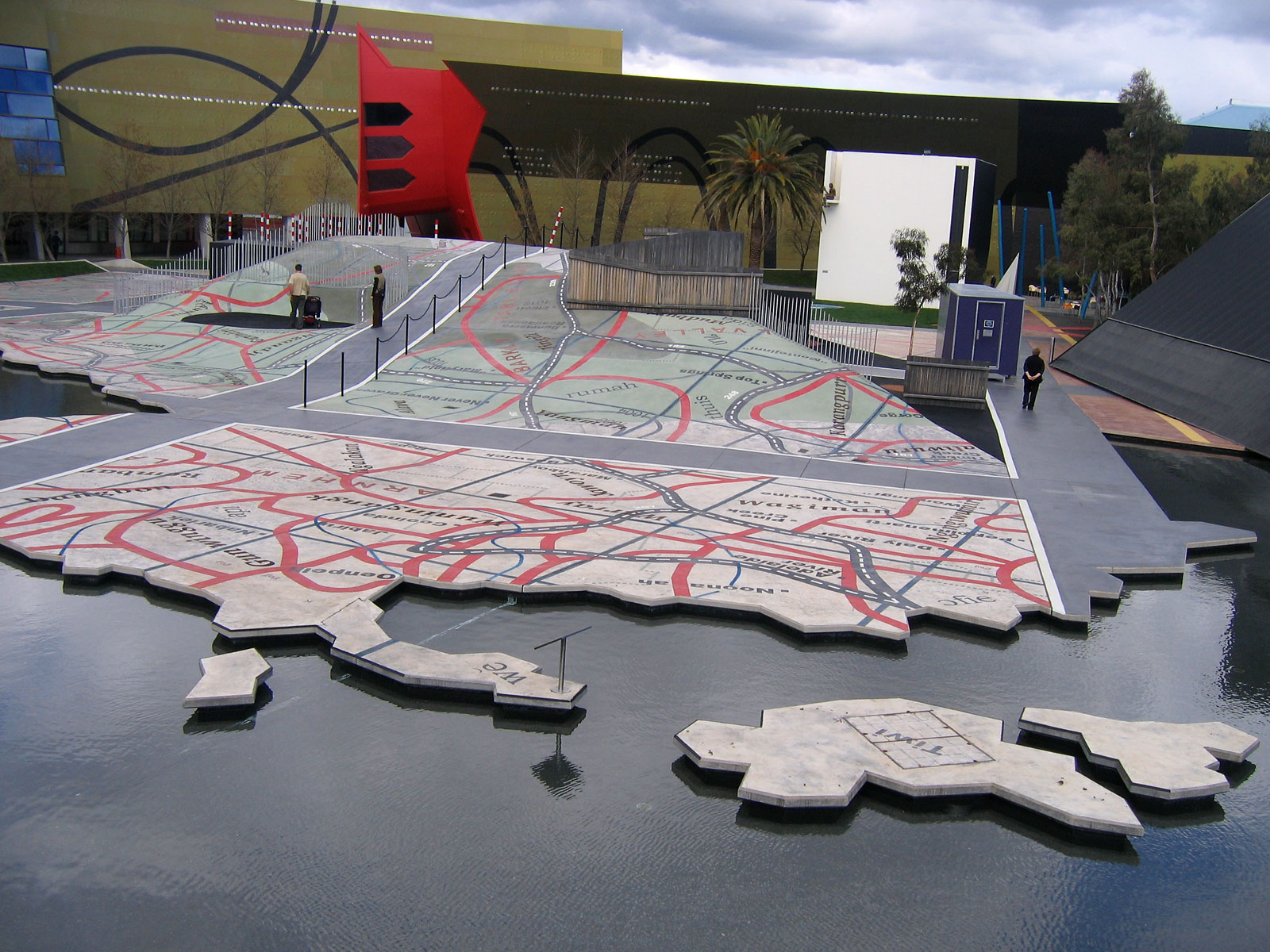 • 오스트레일리아의 꿈 정원은 다양한 지도 제작을 연상시키도록 의도되었다.