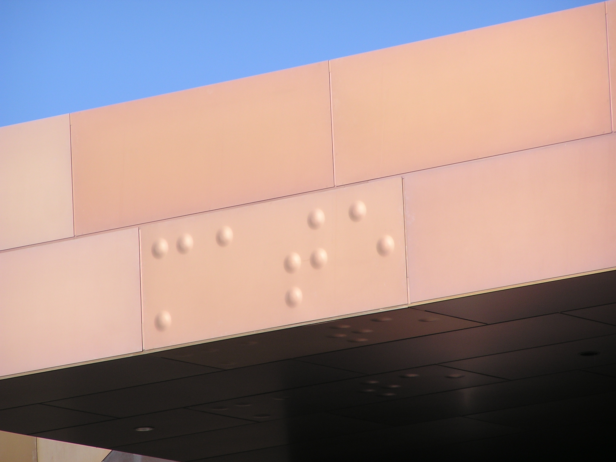 건물의 외관은 양극 산화 처리된 알루미늄 패널로 덮여 있다. 많은 패널에는 점자로 쓰인 단어와 다른 장식 장치가 포함되어 있다. 메시지에는 친구와 "잘 될 거야"가 있다. 또한 "죄송합니다"와 "우리의 집단 학살을 용서하십시오"와 같은 논란이 많은 단어와 구절도 포함되었다. 이러한 더 논란이 많은 메시지는 표면에 부착된 은색 디스크로 인해 점자가 읽을 수 없게 가려졌다.[13]