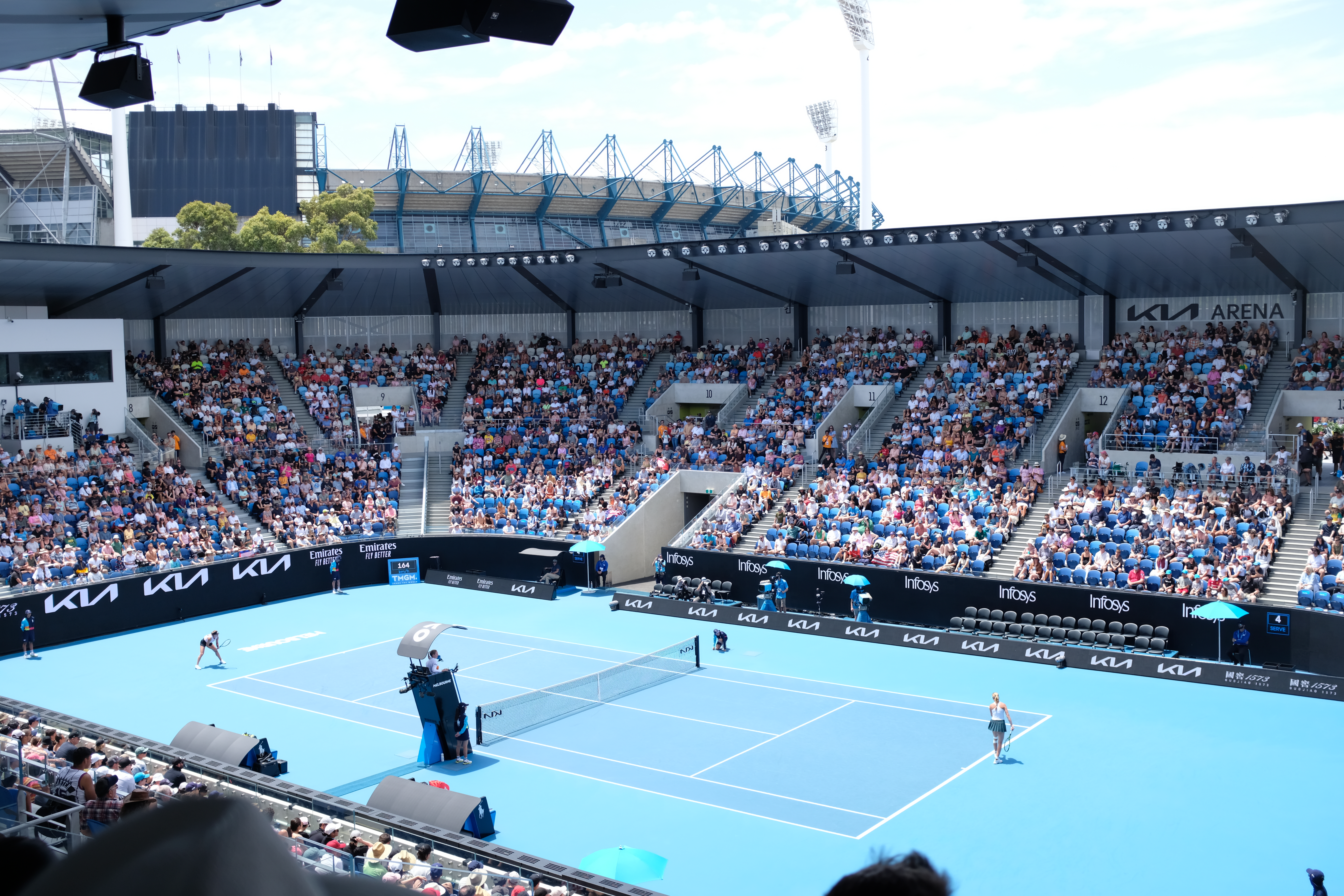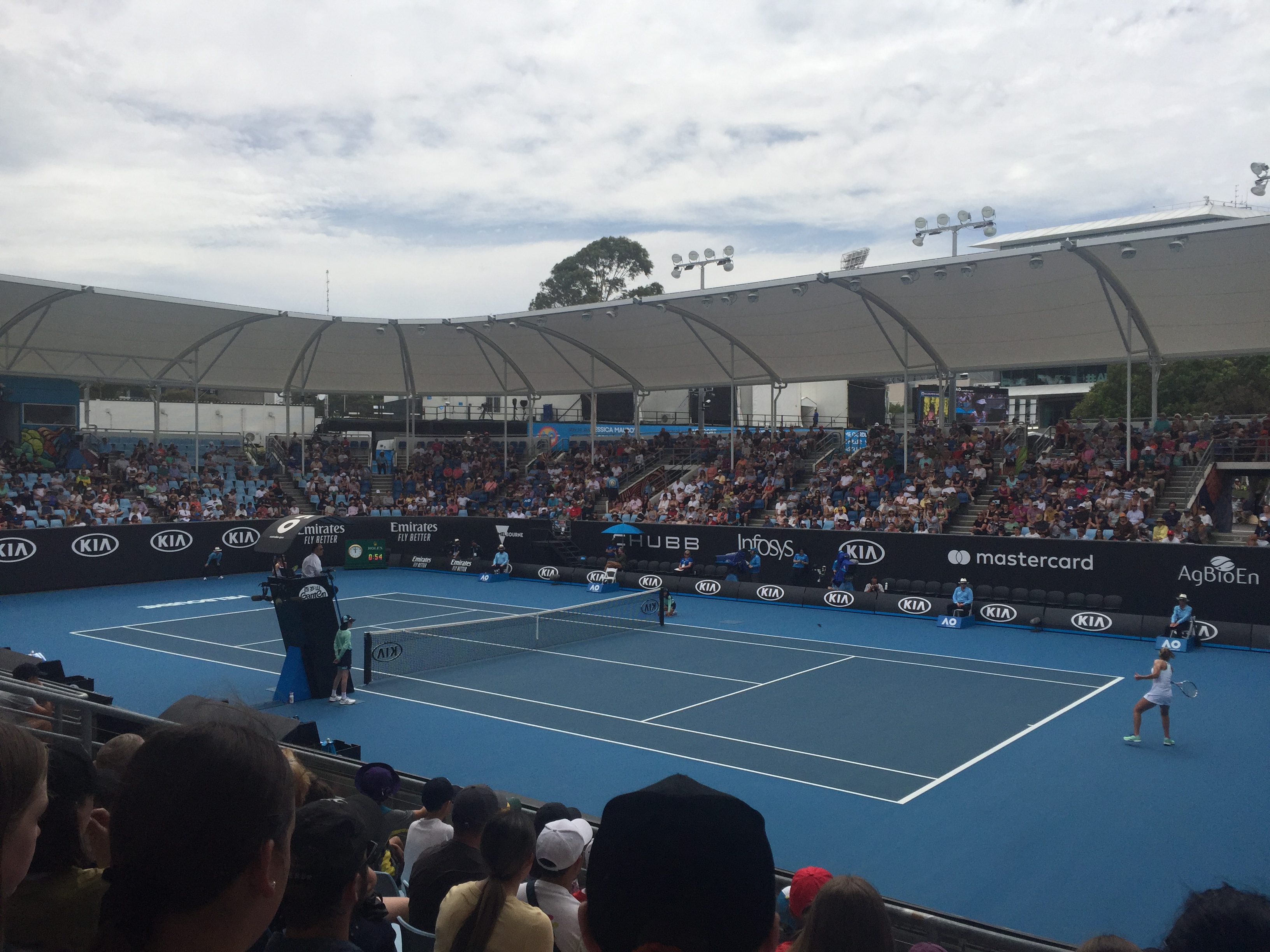 2017년 기준으로, 관람객들은 쇼 코트 2, 3과 4~15, 19, 20 코트에서 임시 좌석 관람석(50~2,500명 수용 가능)을 통해 경기를 관람할 수 있다.[36] 2021년에는 5,000석 규모의 기아 아레나가 완공되었다.[38][28]