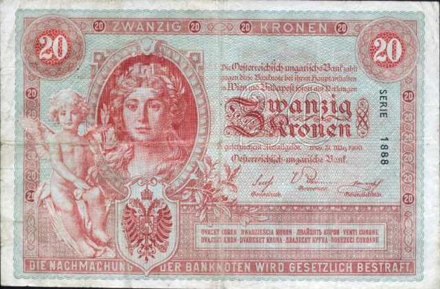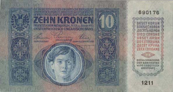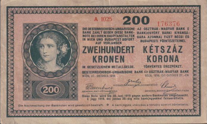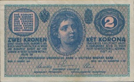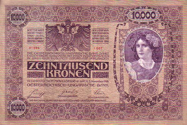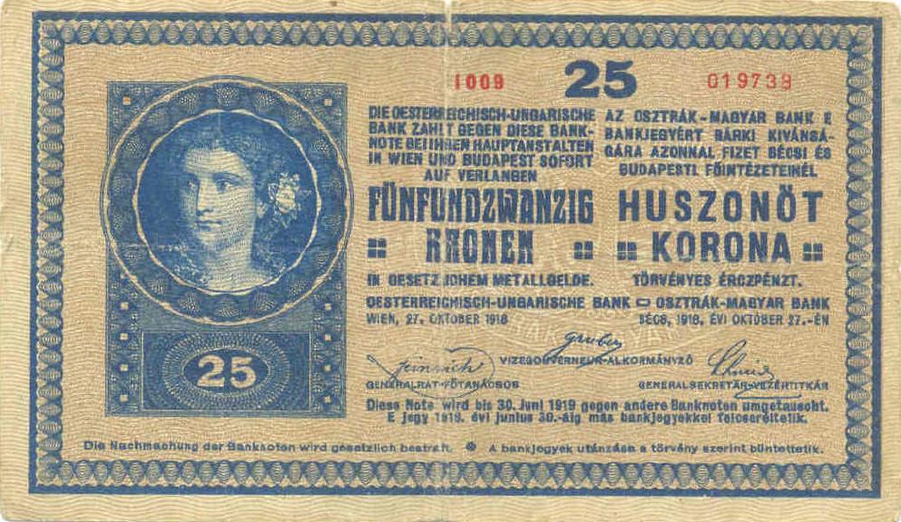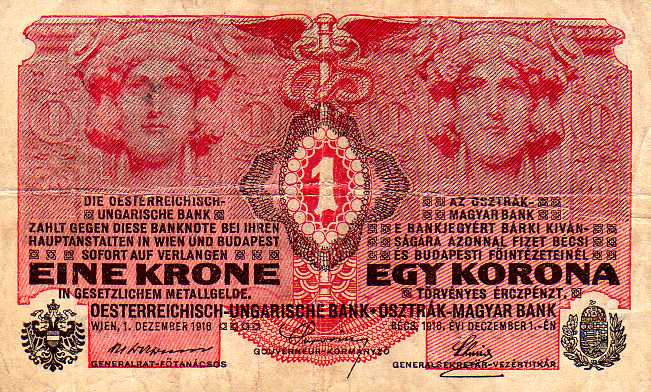 1918년 오스트리아-헝가리 제국이 해체되면서, 제국의 일부 지역에서는 새로운 당국이 크로네 지폐에 도장을 찍어 임시 통화를 발행했다.