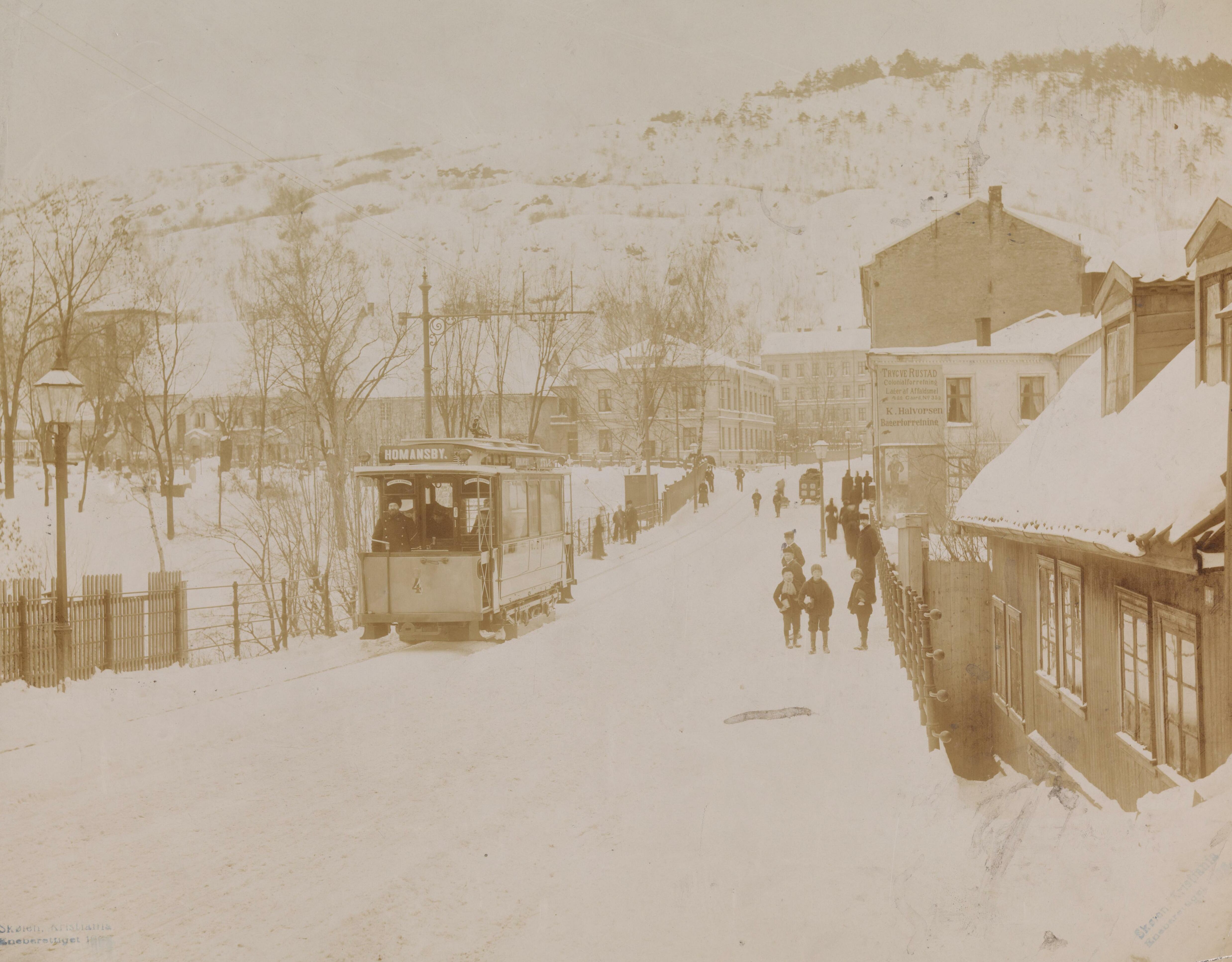 1899년에는 기존에 말이 끌던 트램 노선들이 전기로 바뀌었고, 아케르스가타(Akersgata)에서 사게네(Sagene) 및 로데뢰카(Rodeløkka)까지 운행하는 크리스티아니아 시립 철도 노선이 새로 만들어지는 등 노선망이 확장되었다. 이후 톨부가타(Tollbugata)에서 비페탕엔(Vippetangen)까지 운행하는 노선(녹색선, Grønntrikken)도 개통되었다. 1900년에는 마지막까지 남아 있던 마차 노선인 감레뷔 선(Gamlebylinjen)도 전기 운행을 시작했다.