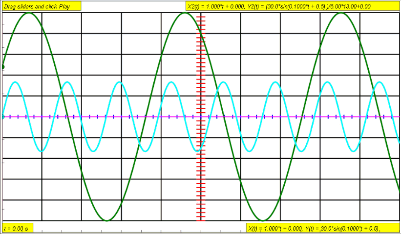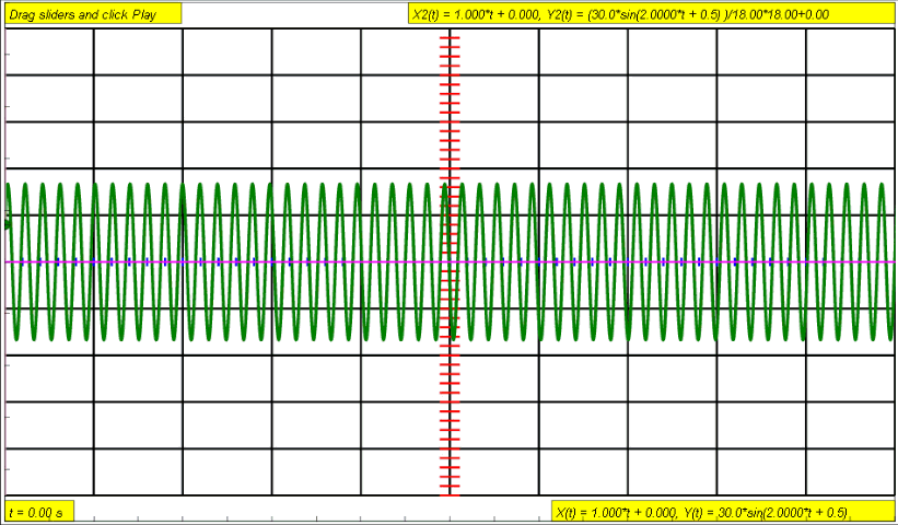 이러한 모든 구성 요소가 작용함으로써 전압 대 시간 그래프를 나타내는 빛의 궤적을 스크린에 그리는 것이다. 전압은 수직축이고 시간은 수평축이다.
