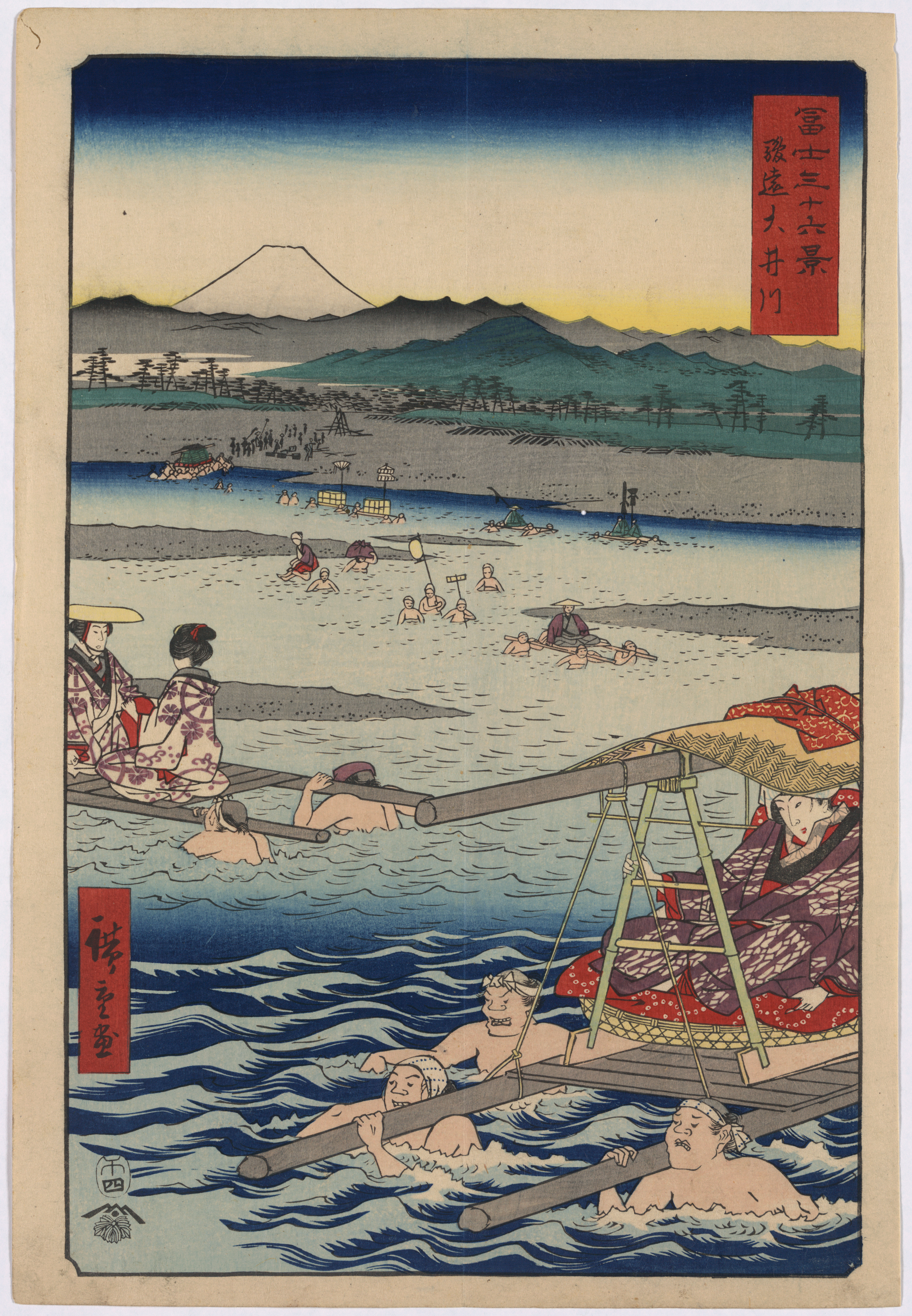 에도 시대 도카이도는 에도와 교토를 연결하는 주요 간선 도로로 발전했고, 서부 번의 ''다이묘''들은 ''산킨코타이'' 제도에 따라 정기적으로 에도에 가서 ''쇼군''에게 출석해야 했다. 그러나 도쿠가와 막부는 보안 조치로 주요 강에 다리를 건설하는 것을 금지했으며, 오이강의 경우 나룻배조차 금지되었다. 호쿠사이 등 당시 예술가들의 ''우키요에'' 판화에 묘사된 것처럼, 여행자들은 짐꾼의 어깨나 말을 타고 강을 건넜다. 악천후나 높은 수위의 경우, 시마다주쿠 또는 가나야주쿠와 같은 역참에서 며칠(또는 심지어 몇 주) 동안 강가에 머물러야 했다.