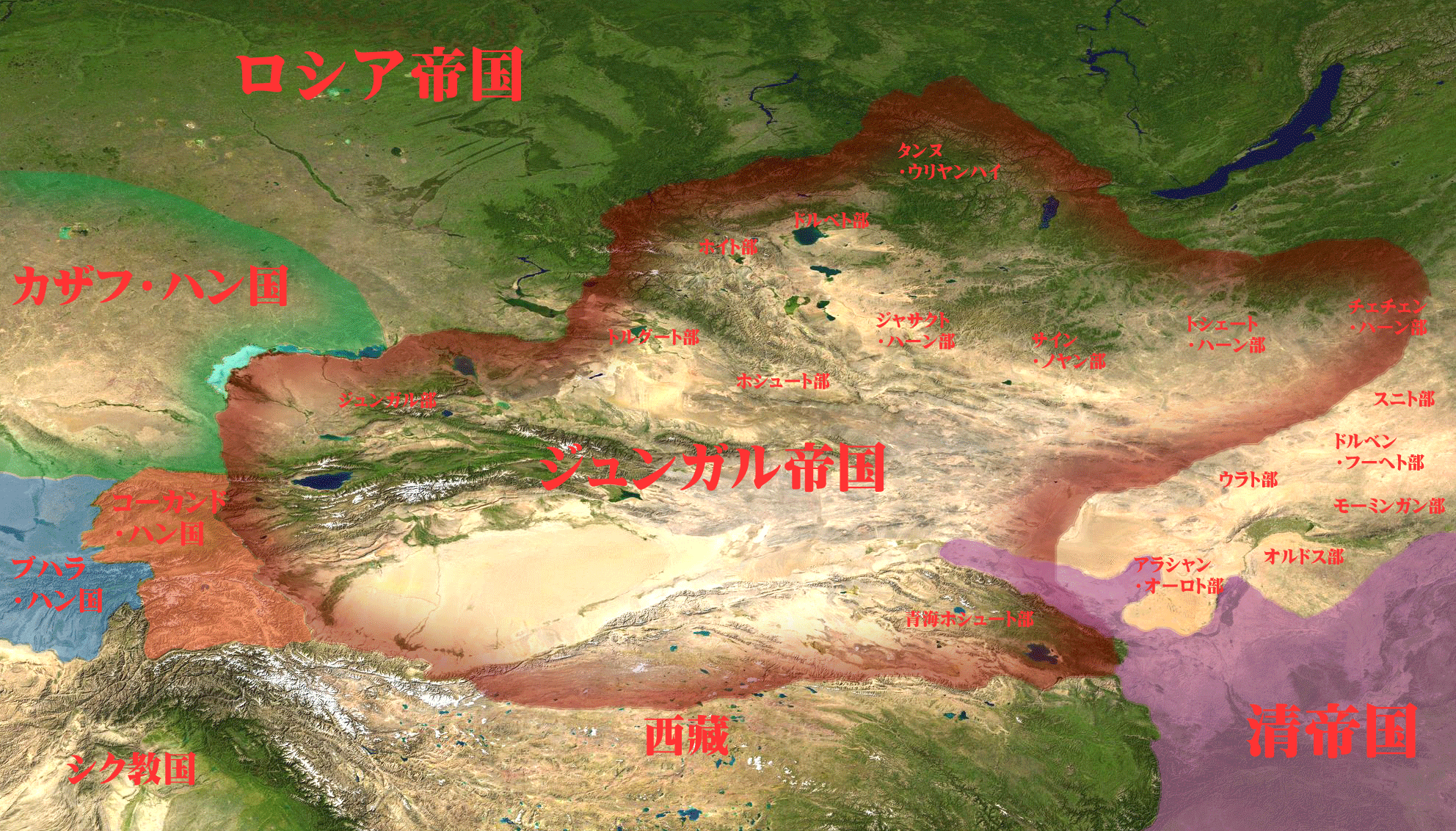 17세기 오이라트는 몽골 고원 서부에서 알타이 산맥을 거쳐 동투르키스탄 북부의 준가리아에 걸쳐 초원 지대에 할거했으며, 호쇼트 부족이 유력해졌다.