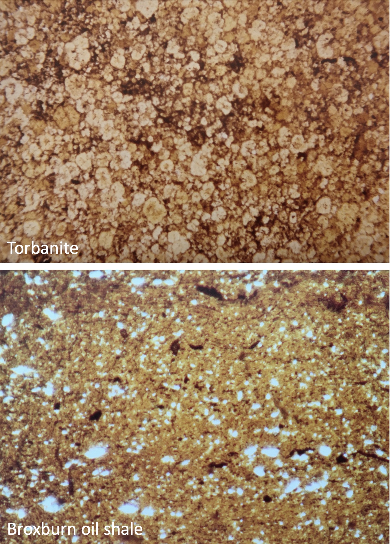 오일 셰일에 포함된 유기물은 담수호의 조류가 많다고 여겨진다. 따라서 유전 지대보다는 탄전 지대에 많이 산출된다.[109]