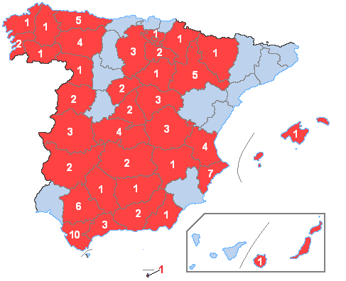 | 카스티야-라 만차 주 | 13 | 나바라 주 | 1 |